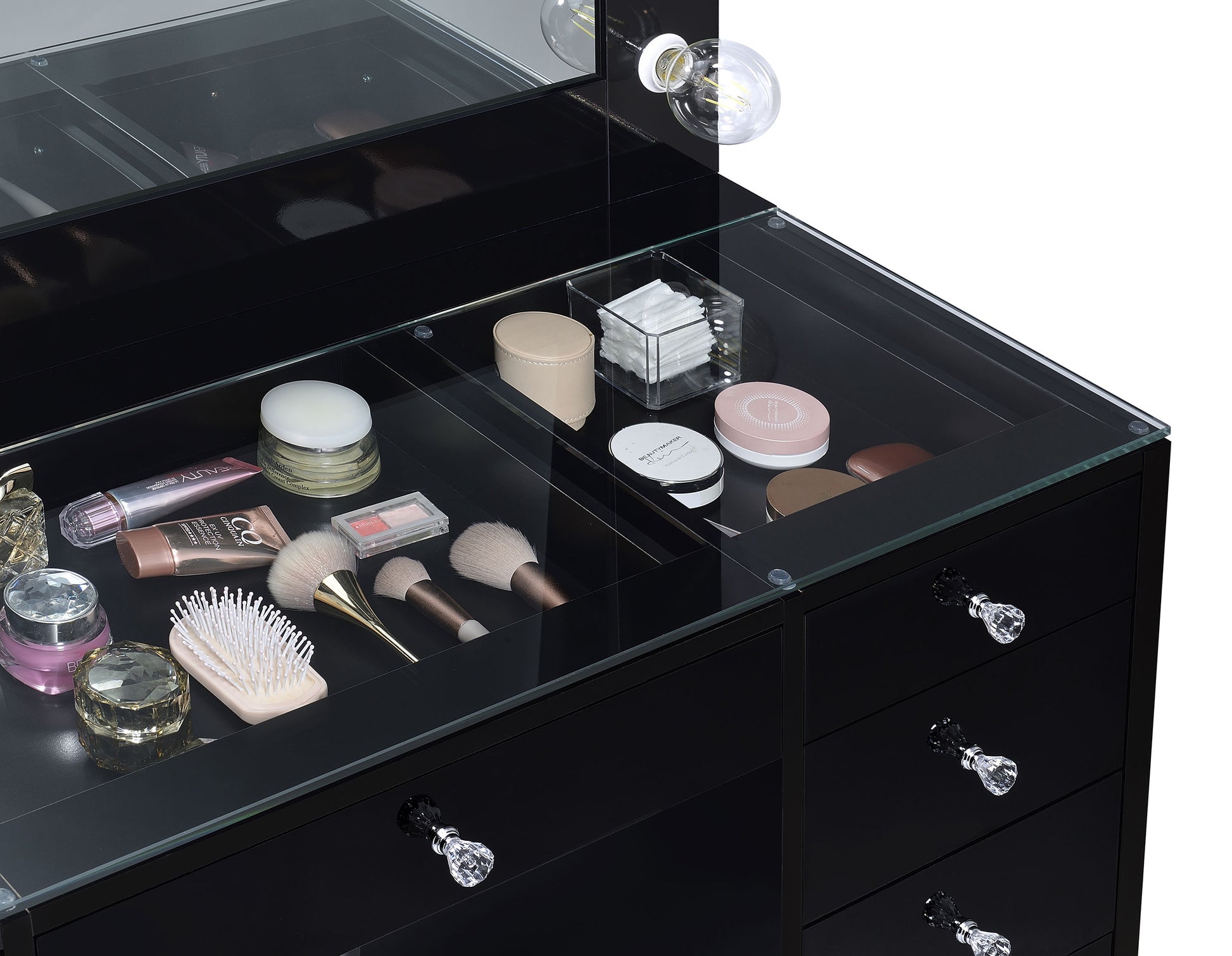 Acena 7-drawer Vanity Set with Lighting Black High Gloss