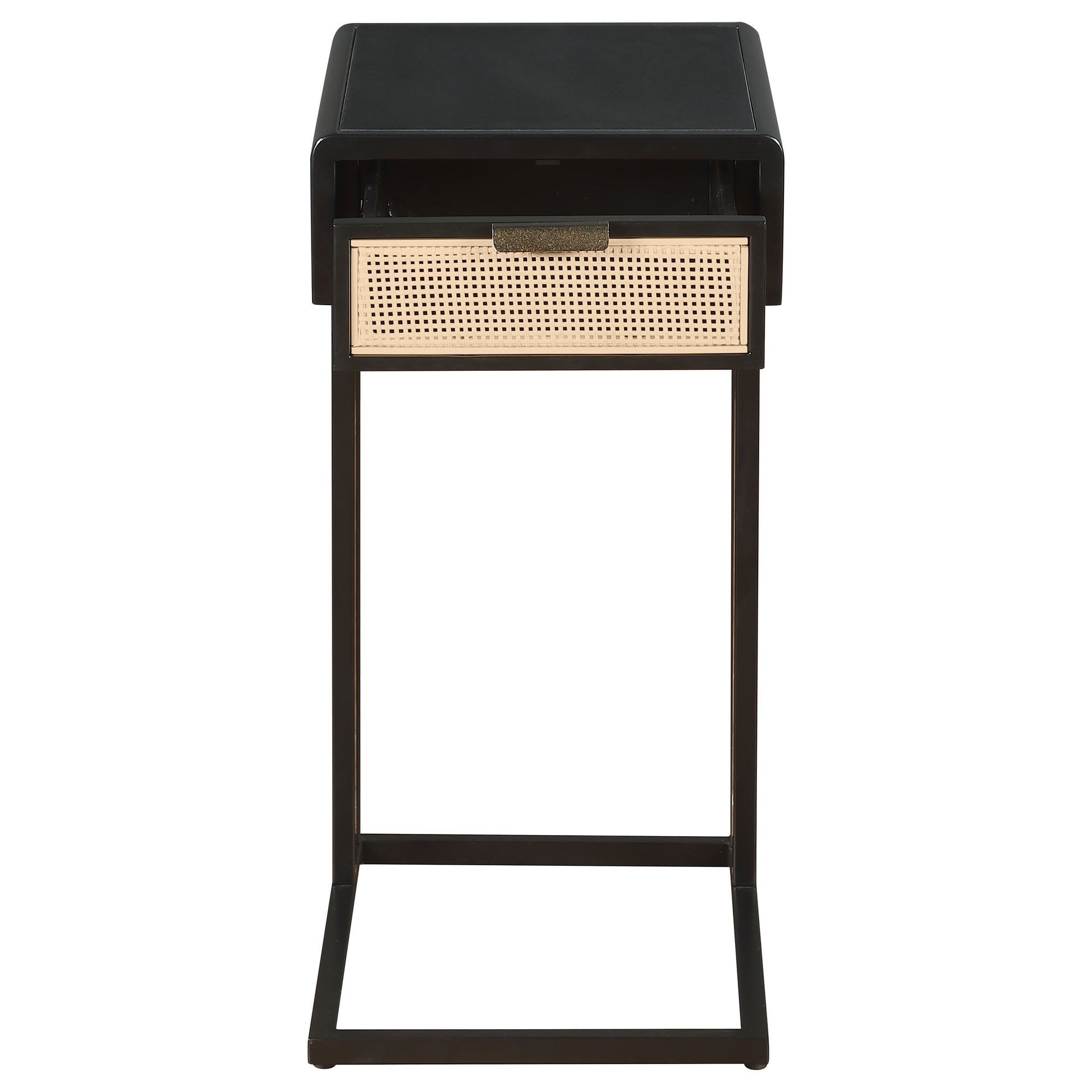 Amherst 1-drawer Radio Weave Cane Metal Side Table Black