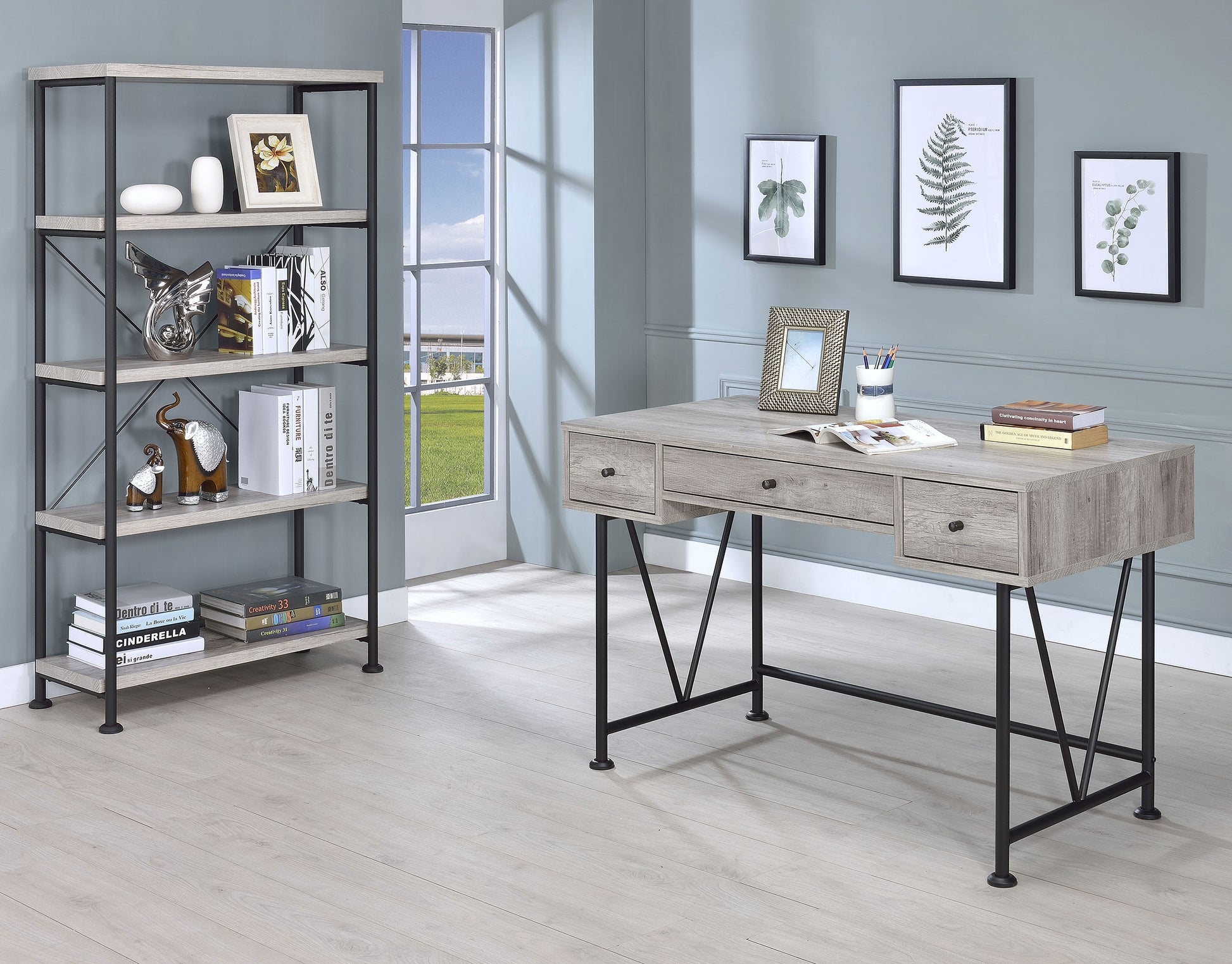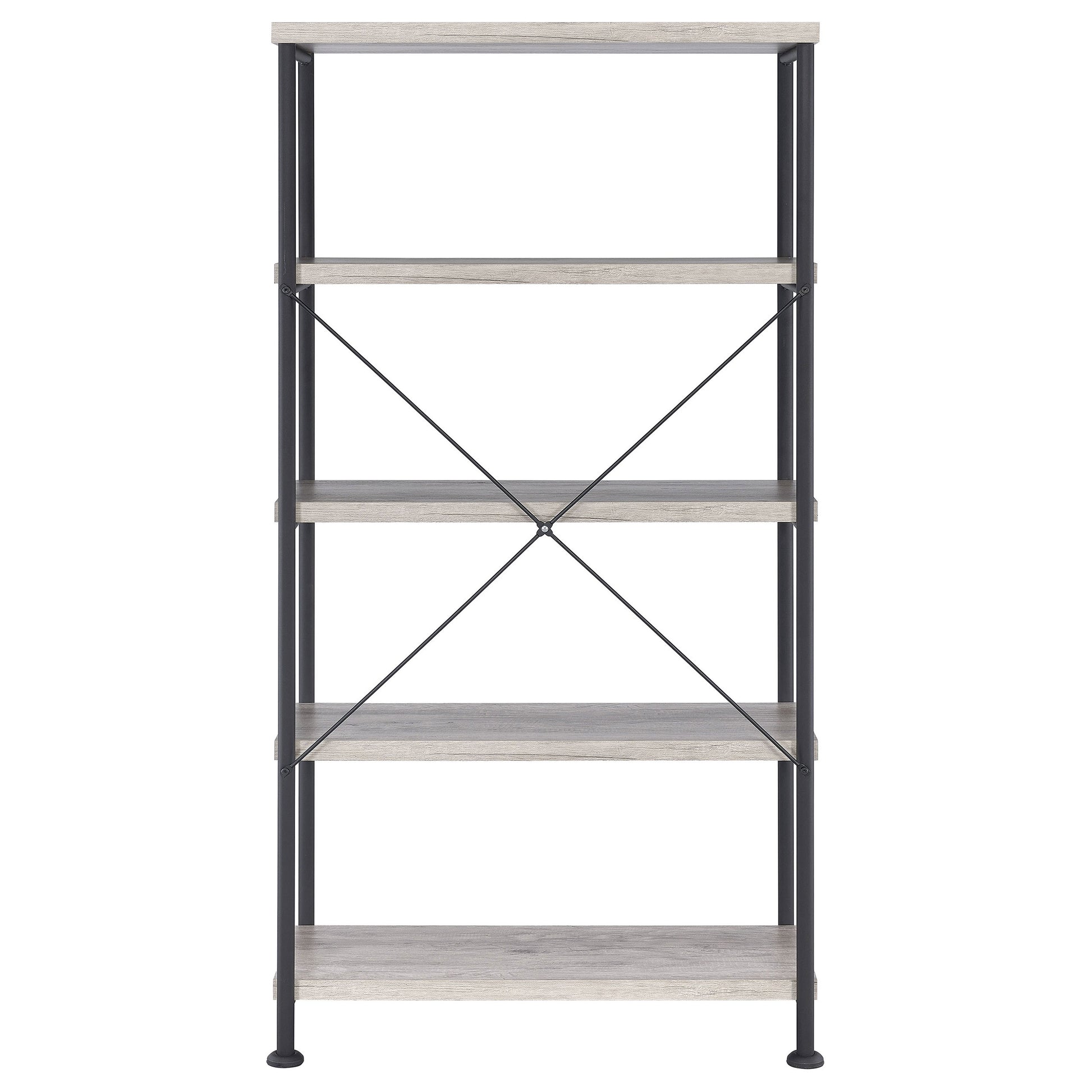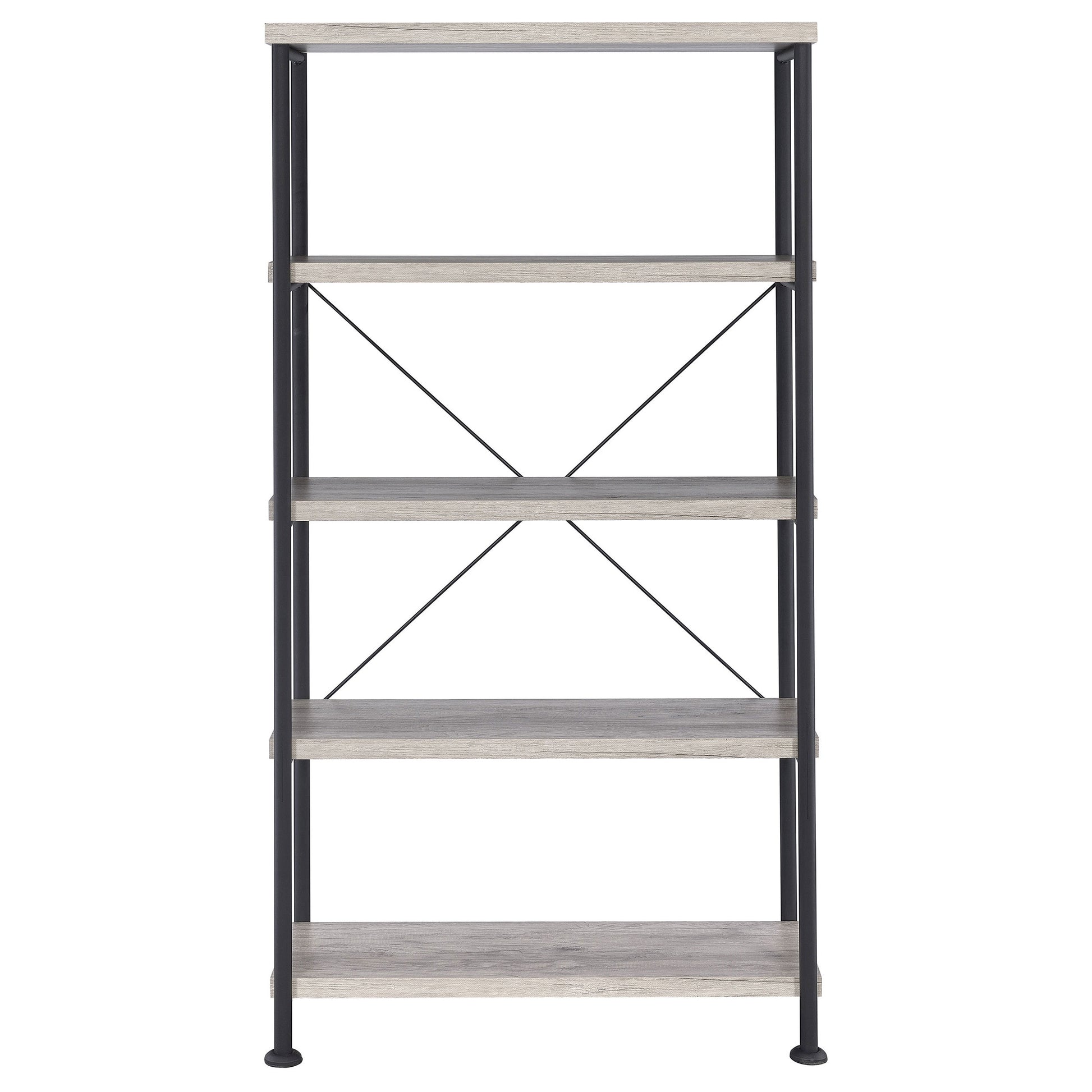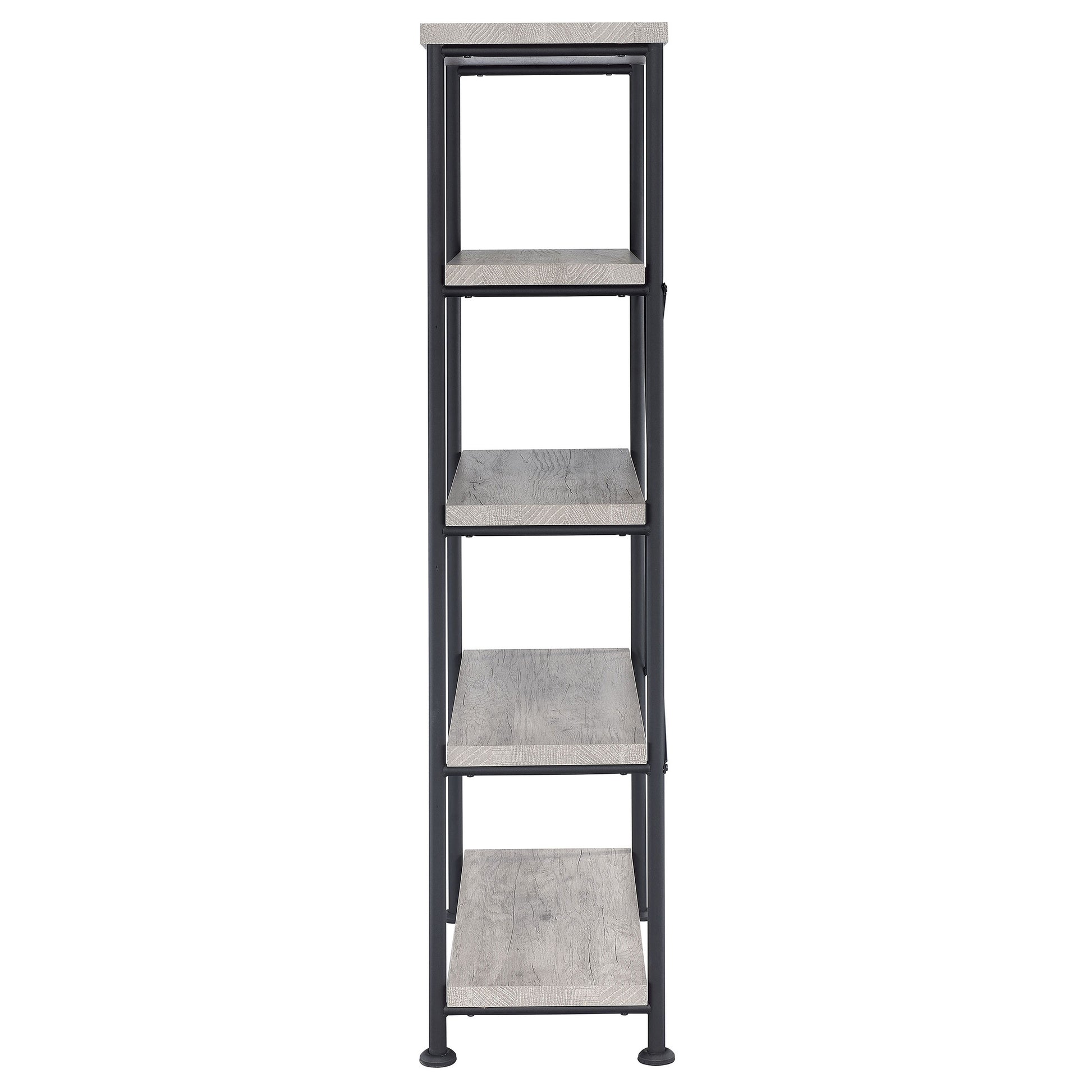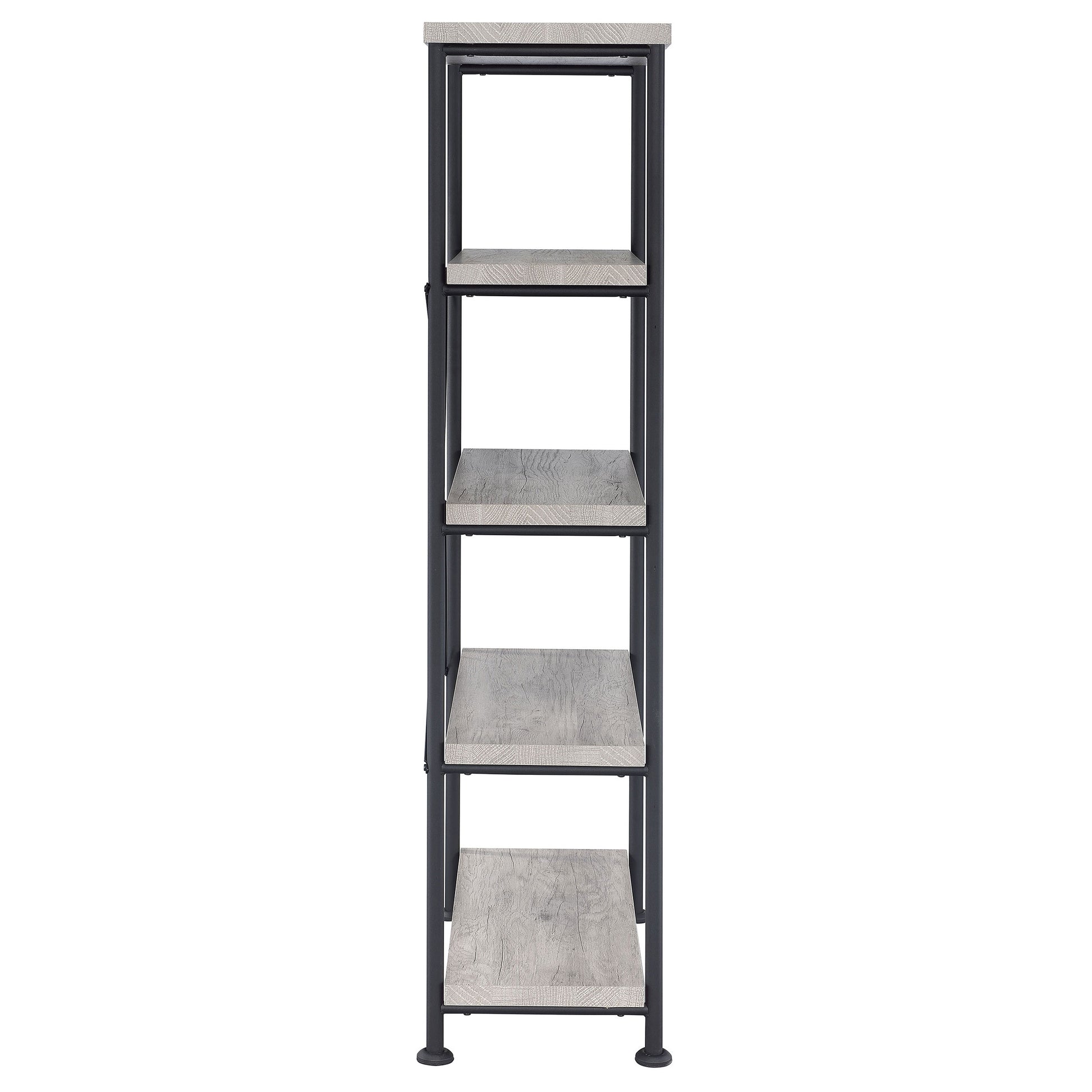 Stay true to modern ambiance. With a lovely palette and sophisticated design, this bookcase becomes an important part of a home office or living space. Place books and decor on four shelves finished in grey driftwood. A slight industrial flavor brings intriguing character and a softer aesthetic that blends in more traditional settings. This bookcase is a perfect choice for energizing any space.