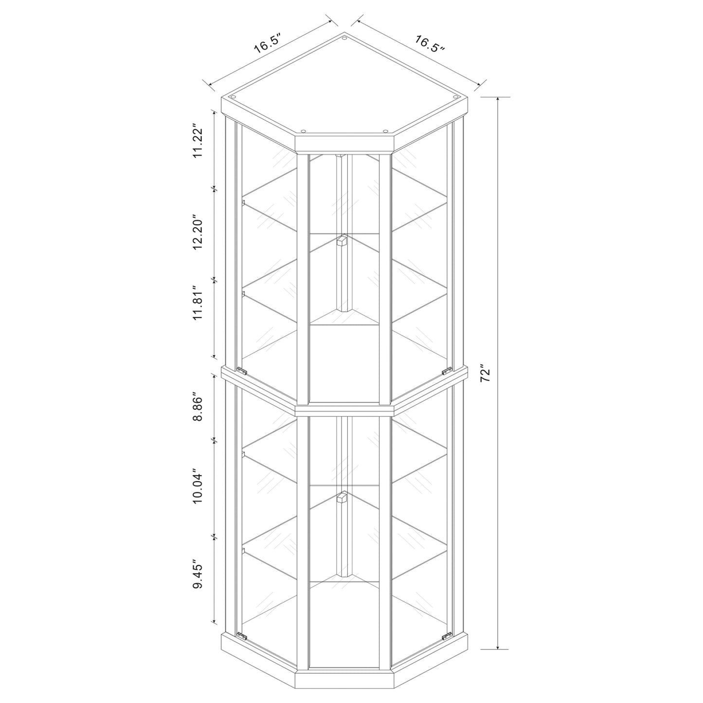 If you fancy special collectibles or unique knickknacks, where can you show them all off? This corner curio cabinet is a fantastic place, for starters. It is crafted to fit perfectly into the corner of your living room or den for prominence. Features five glass shelves plus a bottom one for plenty of display areas. Beautifully finished in medium brown that matches almost any decor.