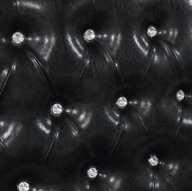 Resting atop elegant bun feet, this glamorous bedroom set brings a touch of stylish appeal that instantly brightens any space! Sophisticated button tufts adorn the leatherette upholstery of the headboard, which brings more attention to its thick and chic frame. Mirrored accent panels bring extra glitz to the design and make this a stunning set to admire!