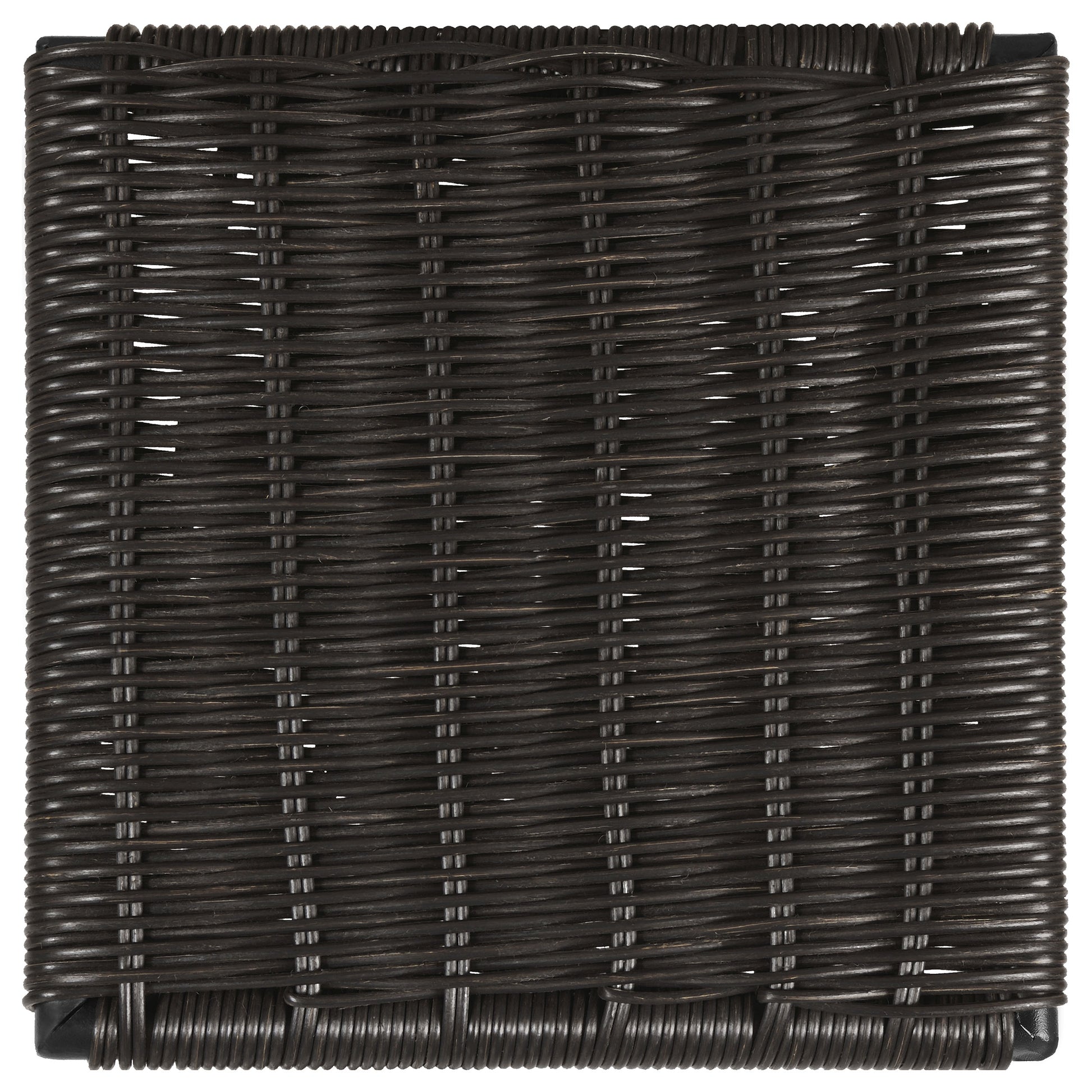 • Complement with a tactile touch: a brown handwoven faux rattan seat on a black metal-framed transitional dining chair