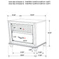 Transform your bedroom with the elegant design of this white set. The panel bed showcases metallic leatherette channel tufting framed by crisp molding and finished with turned feet for timeless charm. Coordinated storage brings added sparkle with glittery acrylic panels and faceted crystal hardware, blending modern radiance with classic details. Sculpted bun feet complete the look, while solid rubberwood, engineered wood, and okume veneer provide durability for lasting beauty and function.