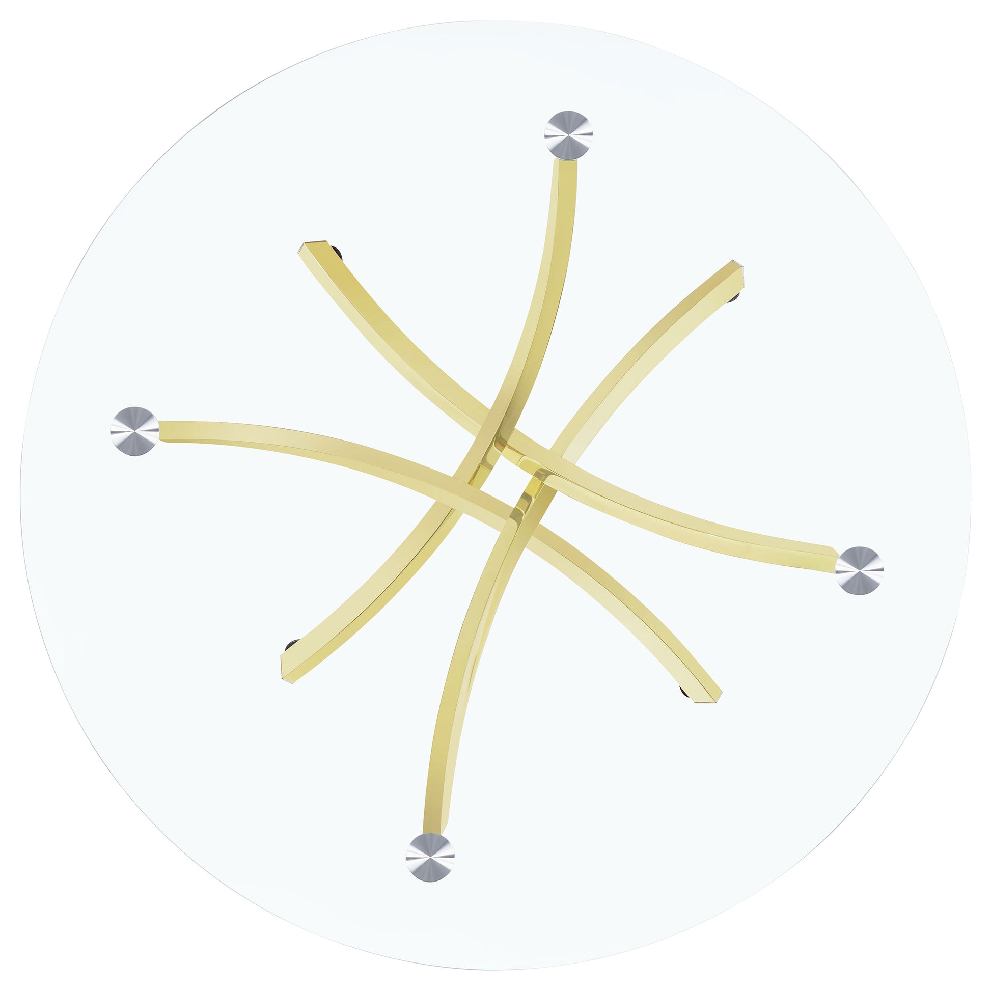 This round dining table offers a striking balance of clarity and form. A clear tempered glass top creates an airy presence, while the sculptural asterisk-style base adds dramatic visual interest. Crafted from heavy gauge metal, the base is electroplated in a reflective brass or chrome finish, providing a luxurious touch to its contemporary silhouette. A bold yet functional centerpiece for modern dining spaces.