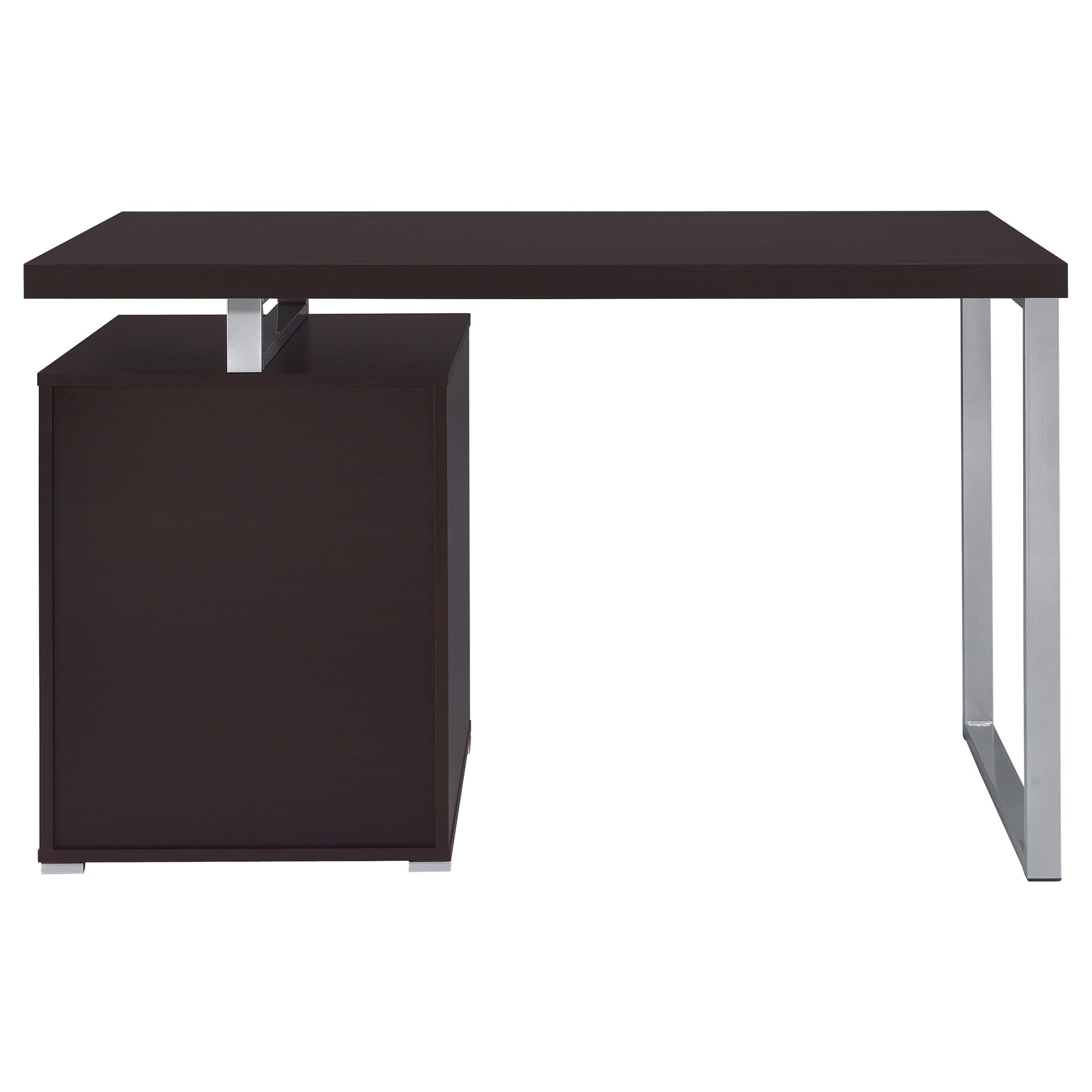 • Cappuccino office desk with modern design and silver finished metal framework