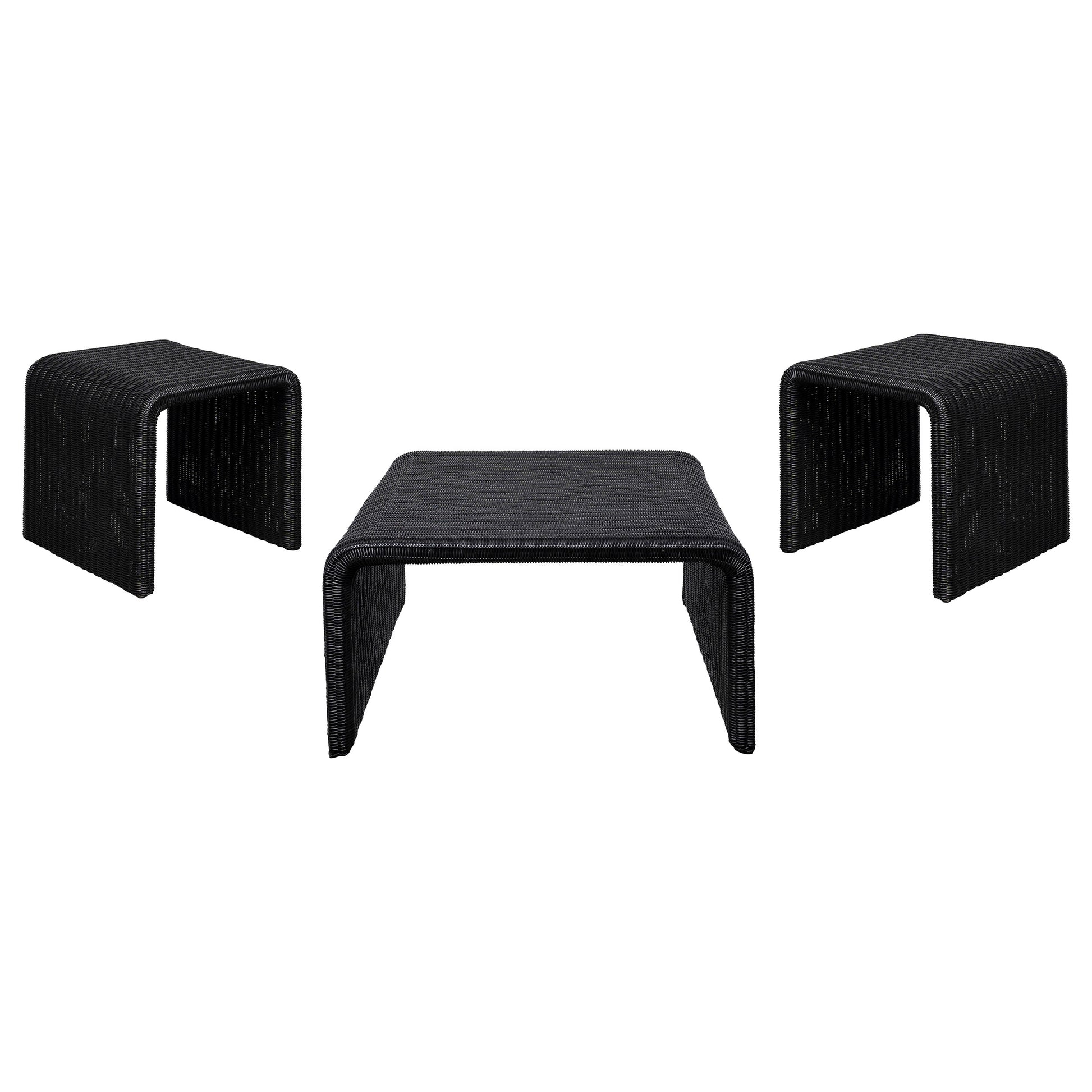Cahya 3-piece Rattan Coffee and End Table Set Black
