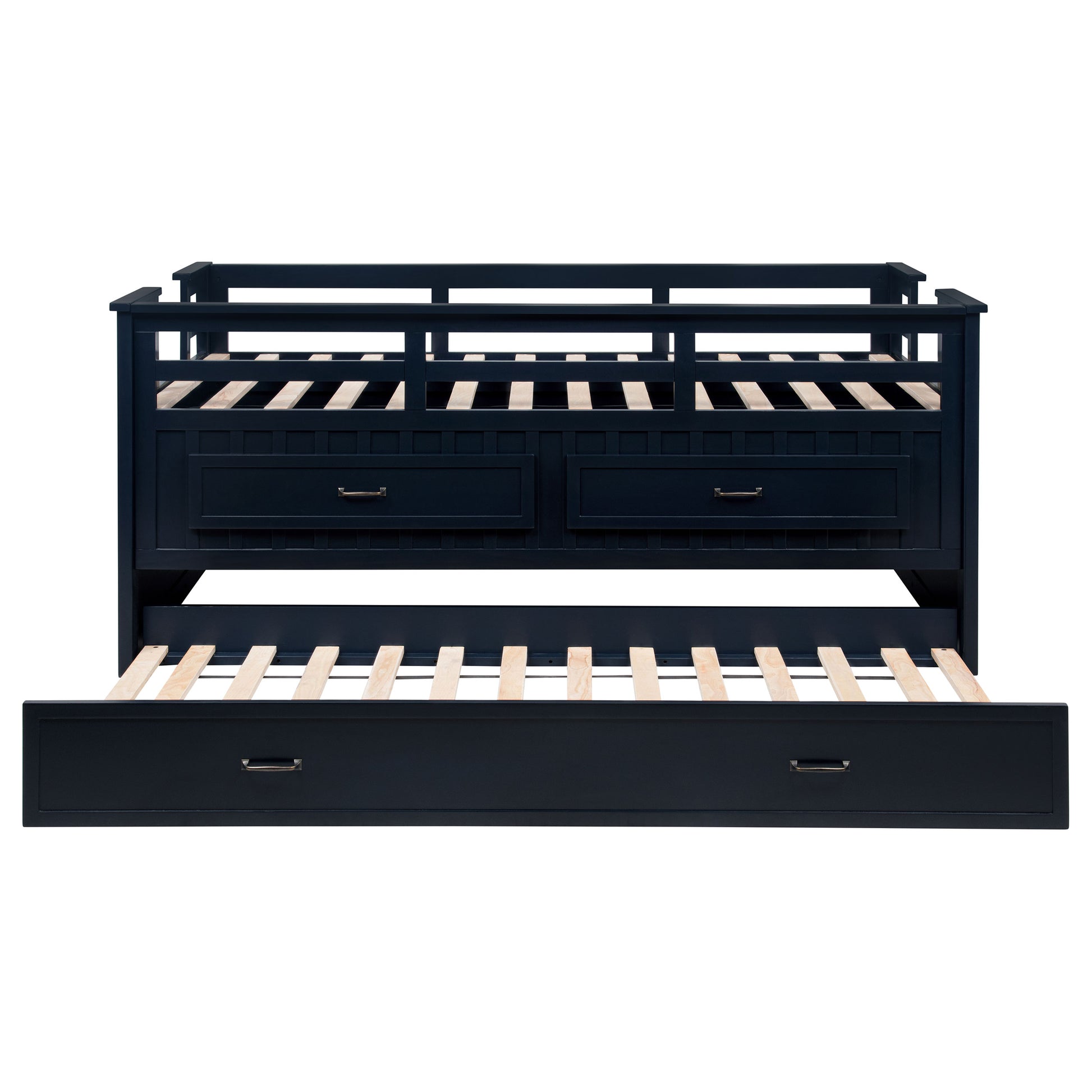 Carlsbad Wood Twin Captains Bed With Trundle Navy Blue