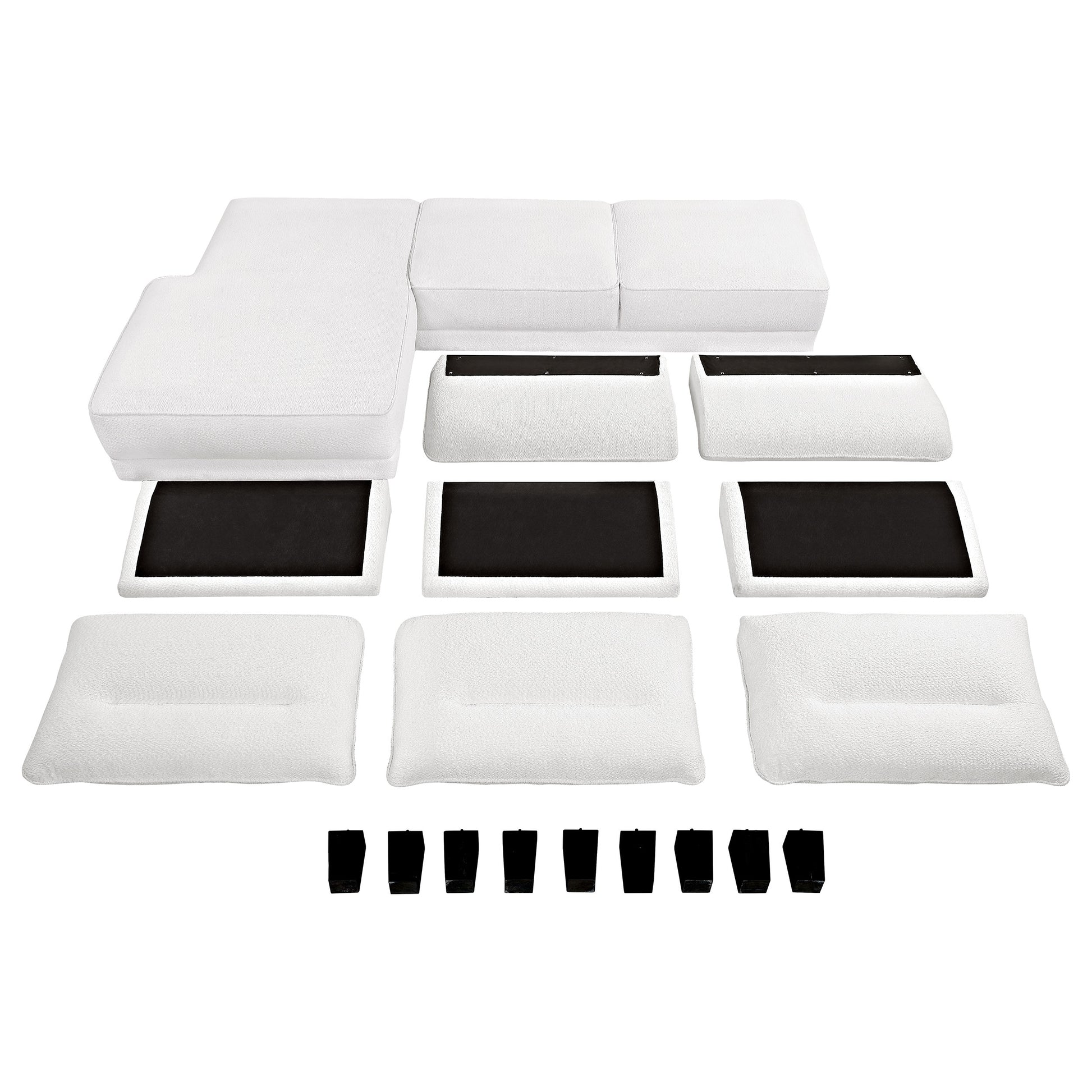 Caspian Upholstered Curved Arm Chaise Sectional Sofa White
