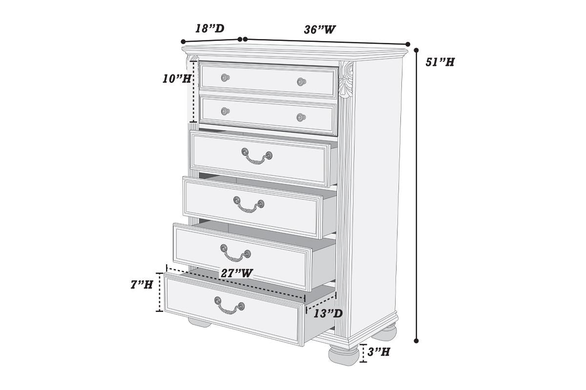 Classic molding with the well crafted finishing that creates a lasting style for this bed frame. The bed headboard consists American traditional style with a sense of delicacy and proper look, and it has the options for queen, California king, and Eastern king sizes. With the craftsmanship that goes into this bed, it brings the best quality into your bedroom. Comes with nightstand, mirror , dresser, and chest that matches perfectly with the bed. A master bedroom set that complete your favorite room.