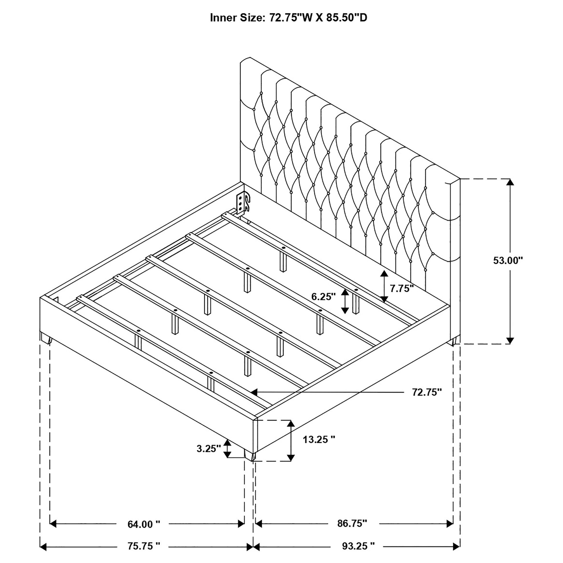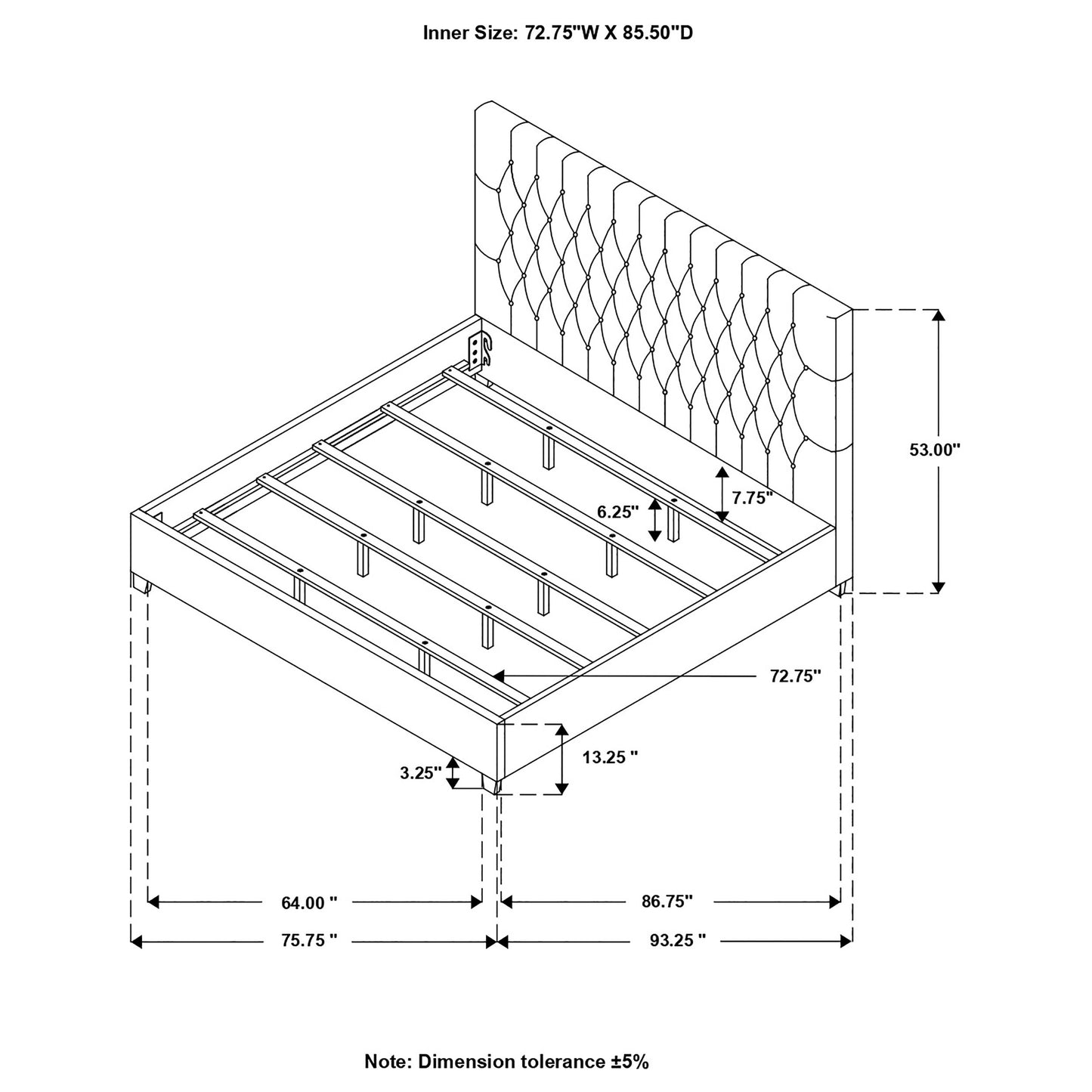 Elevate your bedroom with this upholstered panel bed, crafted with refined details for timeless charm. A tall, button-tufted headboard creates an elegant focal point, while the absence of a footboard lends an airy, open feel. Upholstered in soft fabric and supported by short espresso birch legs, this bed balances style with durability. Built with a sturdy pine and plywood frame, it requires a foundation to provide lasting support and comfort in your sleeping space.