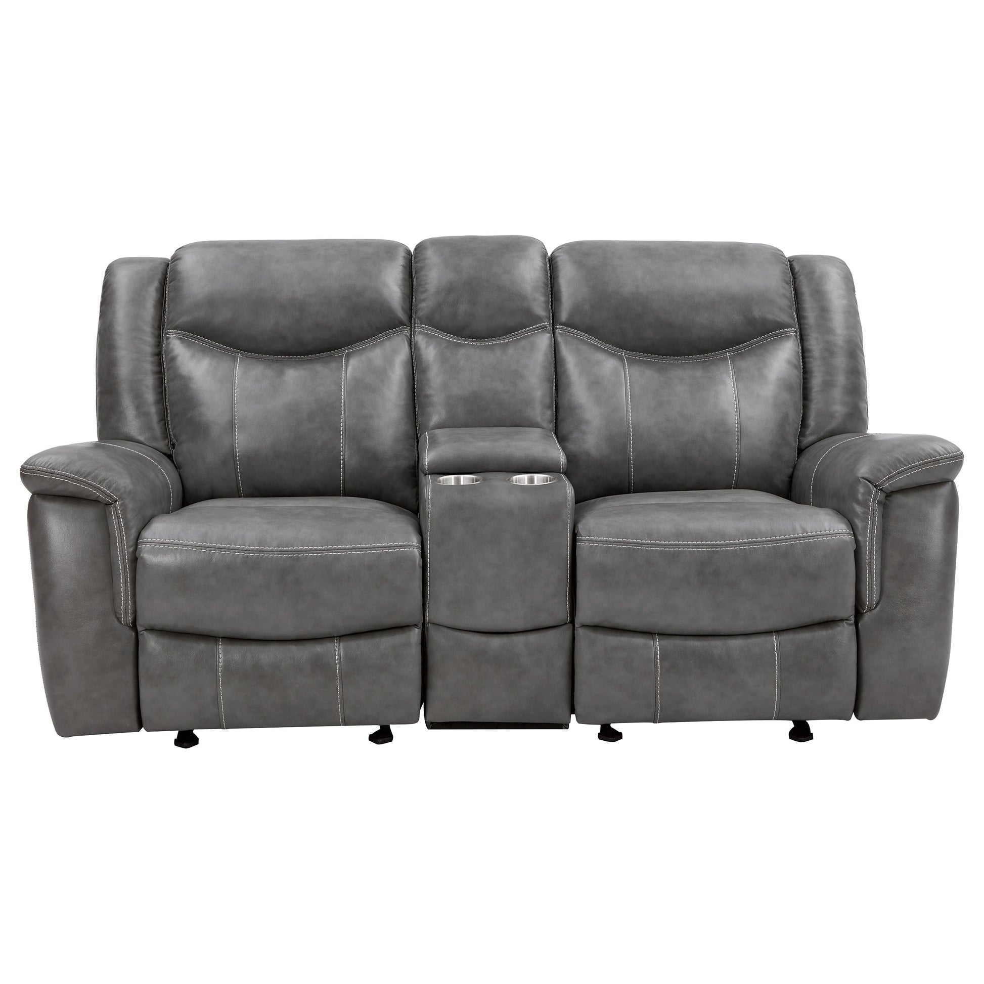 Experience superior comfort and modern convenience with this glider reclining loveseat upholstered in smooth grey faux leather. Designed with plush padded seats, headrests, and armrests, it offers a relaxing and supportive feel. The centre console includes two stainless steel cup holders, a soft-close lift-top compartment with dual AC and USB ports, and a lower storage drawer for added functionality. With a one-inch cool gel memory foam topper, this loveseat delivers lasting comfort and effortless style.