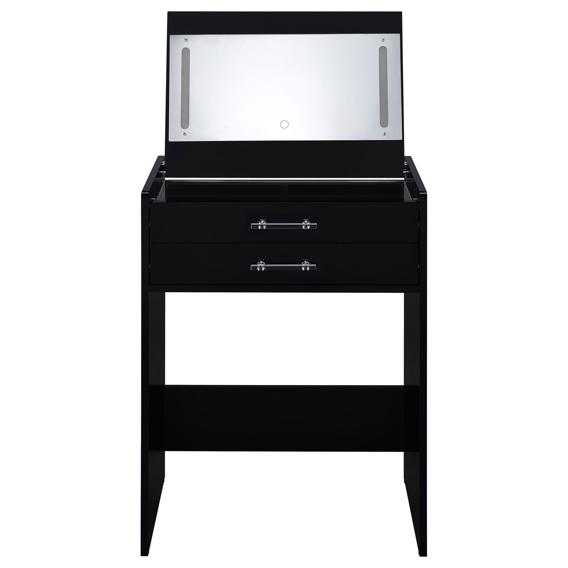 • Black high gloss makeup vanity set crafted from engineered wood with eco-friendly laminate