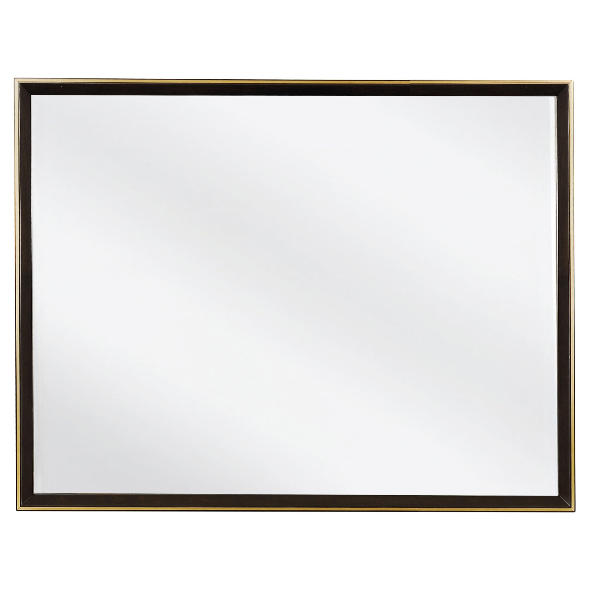 Geometric features from this California king four-piece bedroom set transform a modern setting. Warm and full of depth, the high headboard features upholstery and a smoked peppercorn finish. Complete with ample storage, this set has a nine-drawer dresser and two-dresser nightstand and included shelf. Welcome structure from the silhouette and personality from the retro inspired details. Dress up the dresser with the clean and elongated mirror.