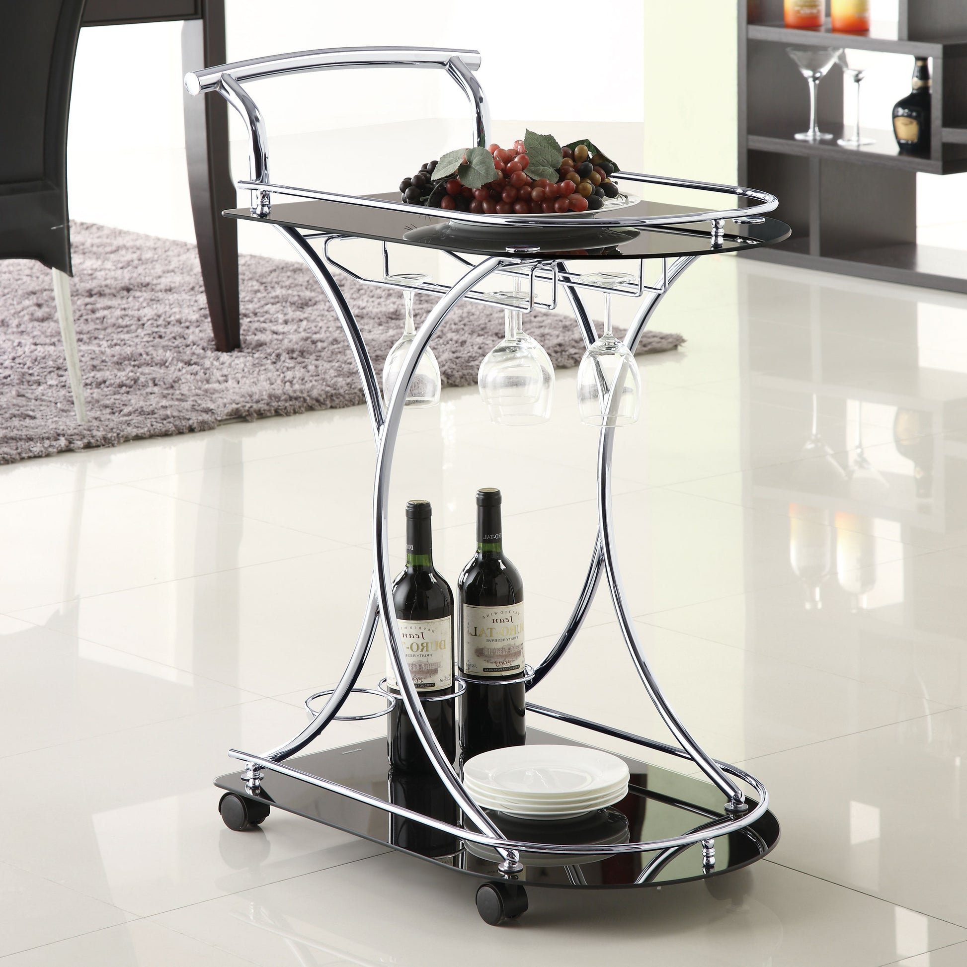 Elfman 2-tier Glass Shelf Metal Bar Cart Black and Chrome