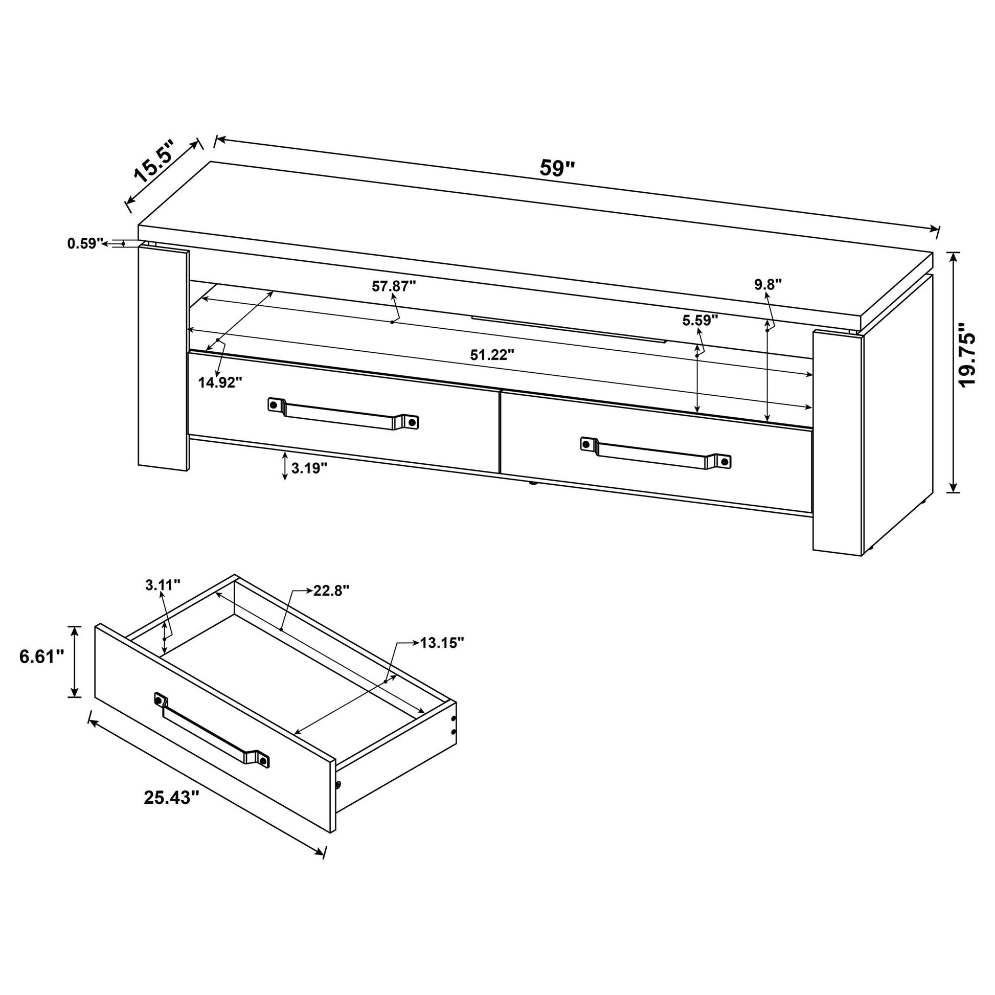 • Spacious storage compartment and two smoothly sliding drawers with euro drawer glides for easy access