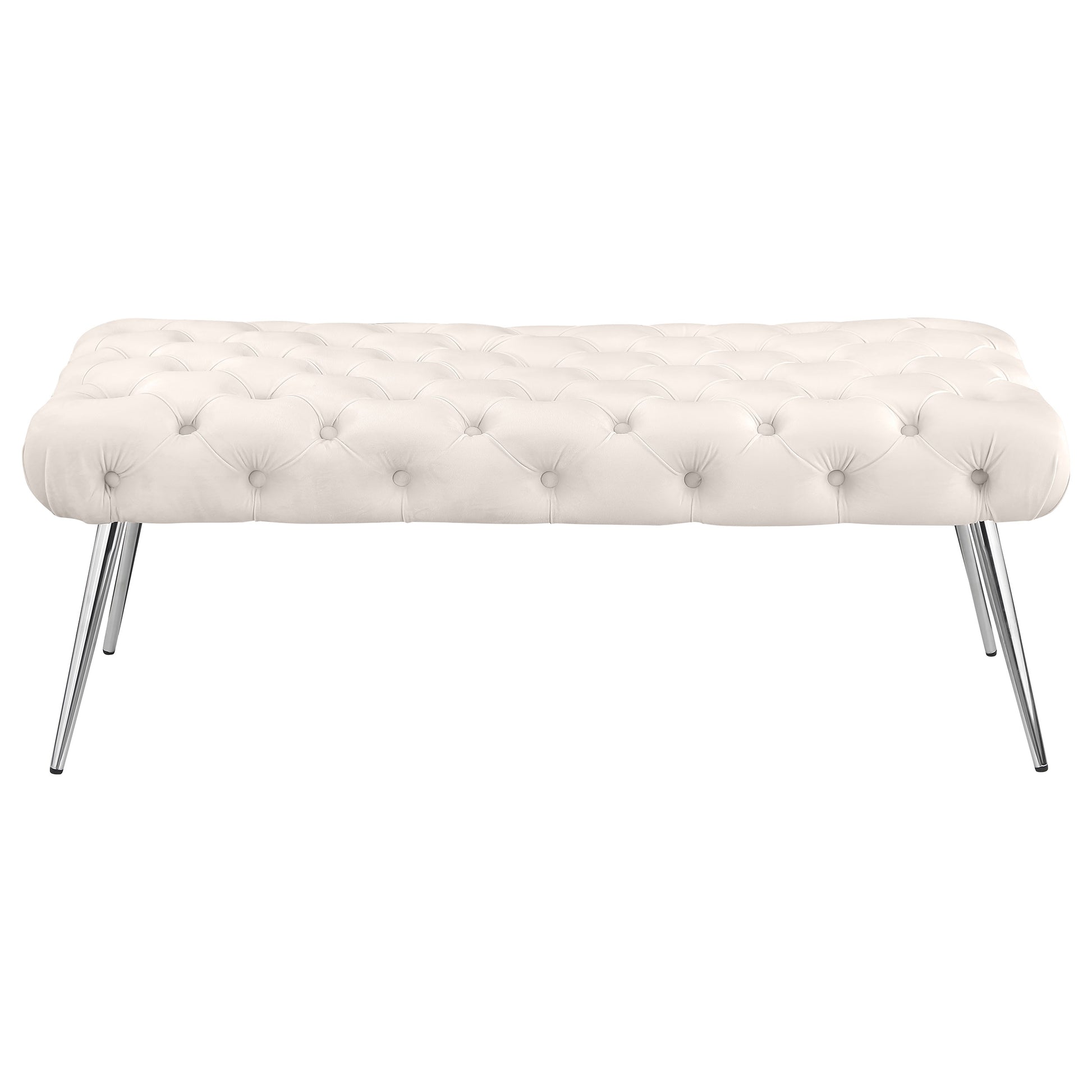 Ella Upholstered Tufted Bench Stainless Steel Legs Ivory