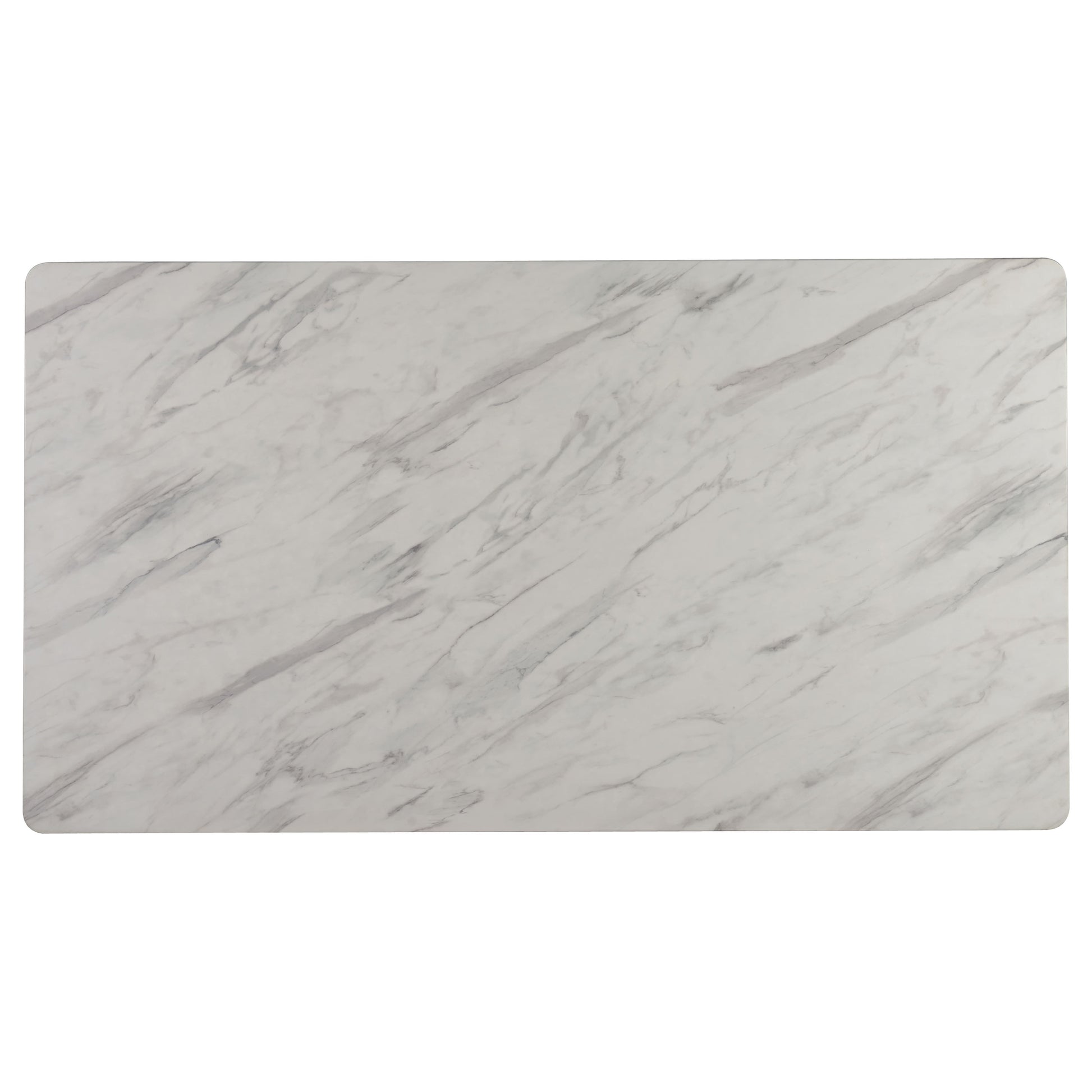 • Elevate your casual dining space with a Swedish-Euro-inspired chic dining set featuring a faux marble tabletop
