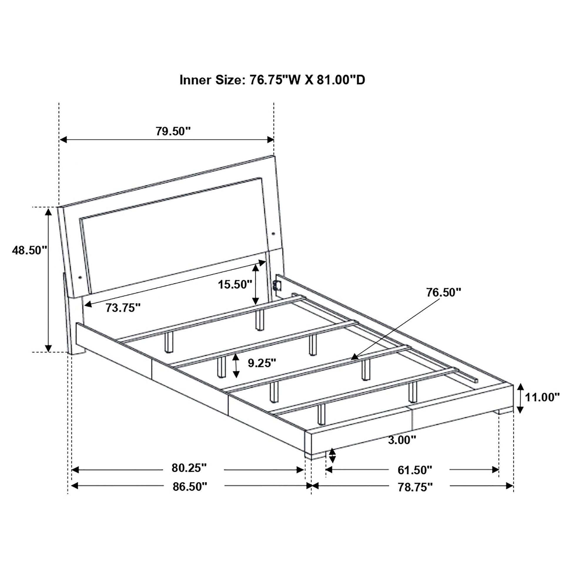 Modern design meets ambient lighting in this contemporary bedroom set. The bed features a white high gloss headboard with built-in blue LED lighting, activated by a convenient touch switch. A faux leather upholstered bed frame adds a refined touch, while matching storage elements offer smooth metal glides and chrome-finished details. With clean lines and integrated lighting, this set adds both functionality and visual impact to any modern bedroom.