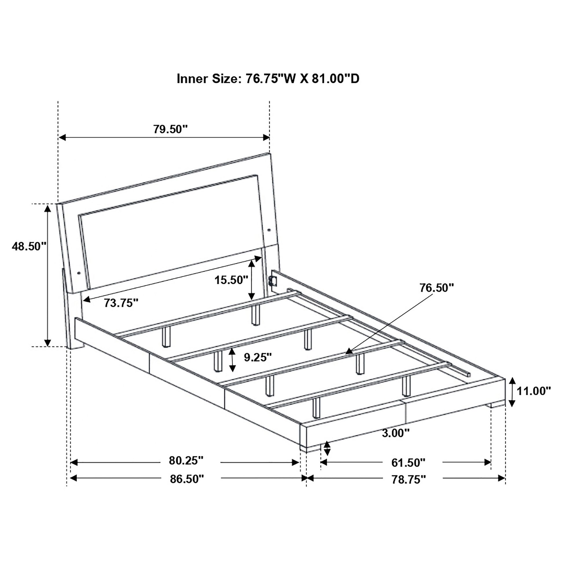 • Headboard includes touch-activated blue LED lighting in a high gloss frame