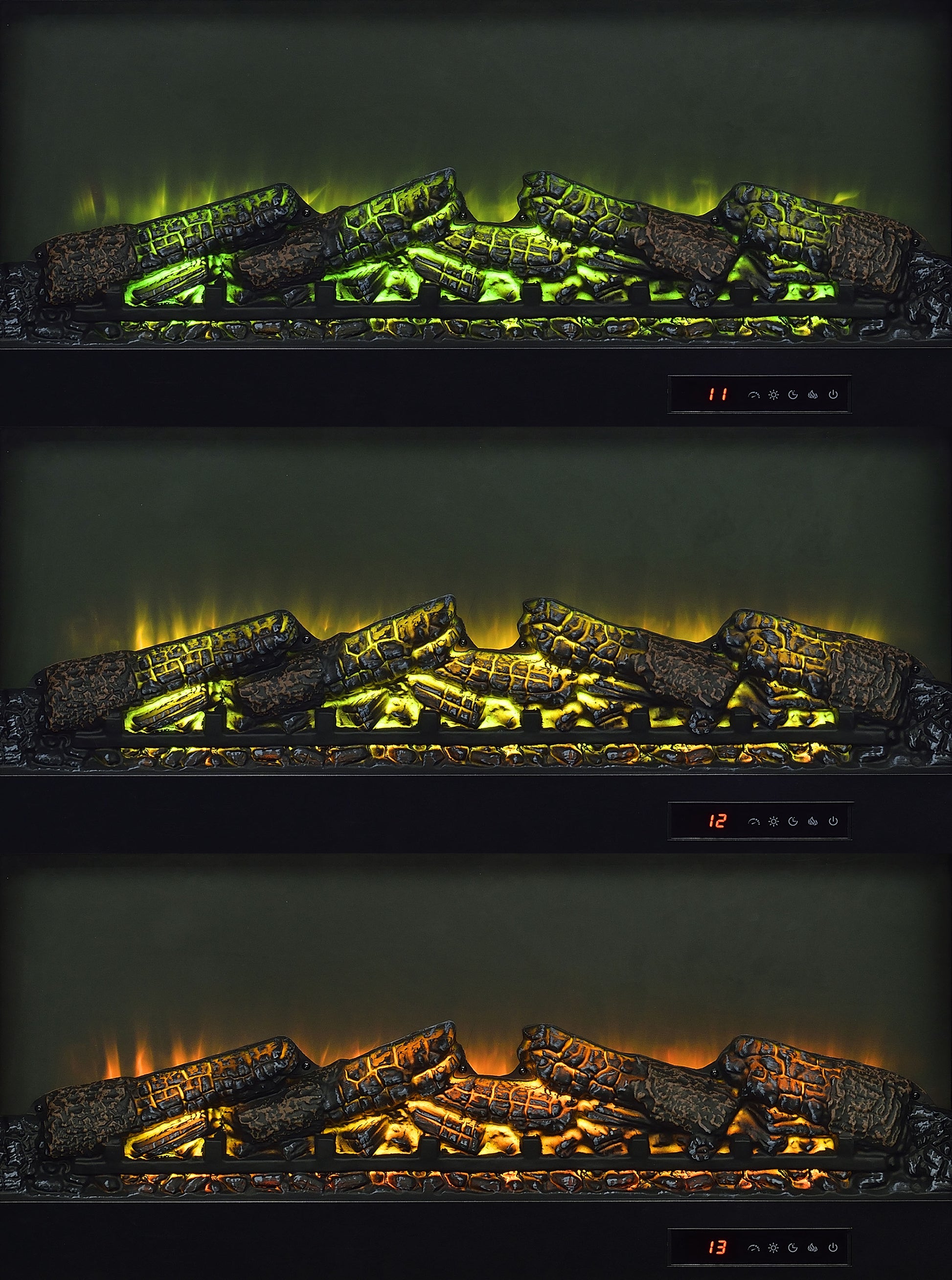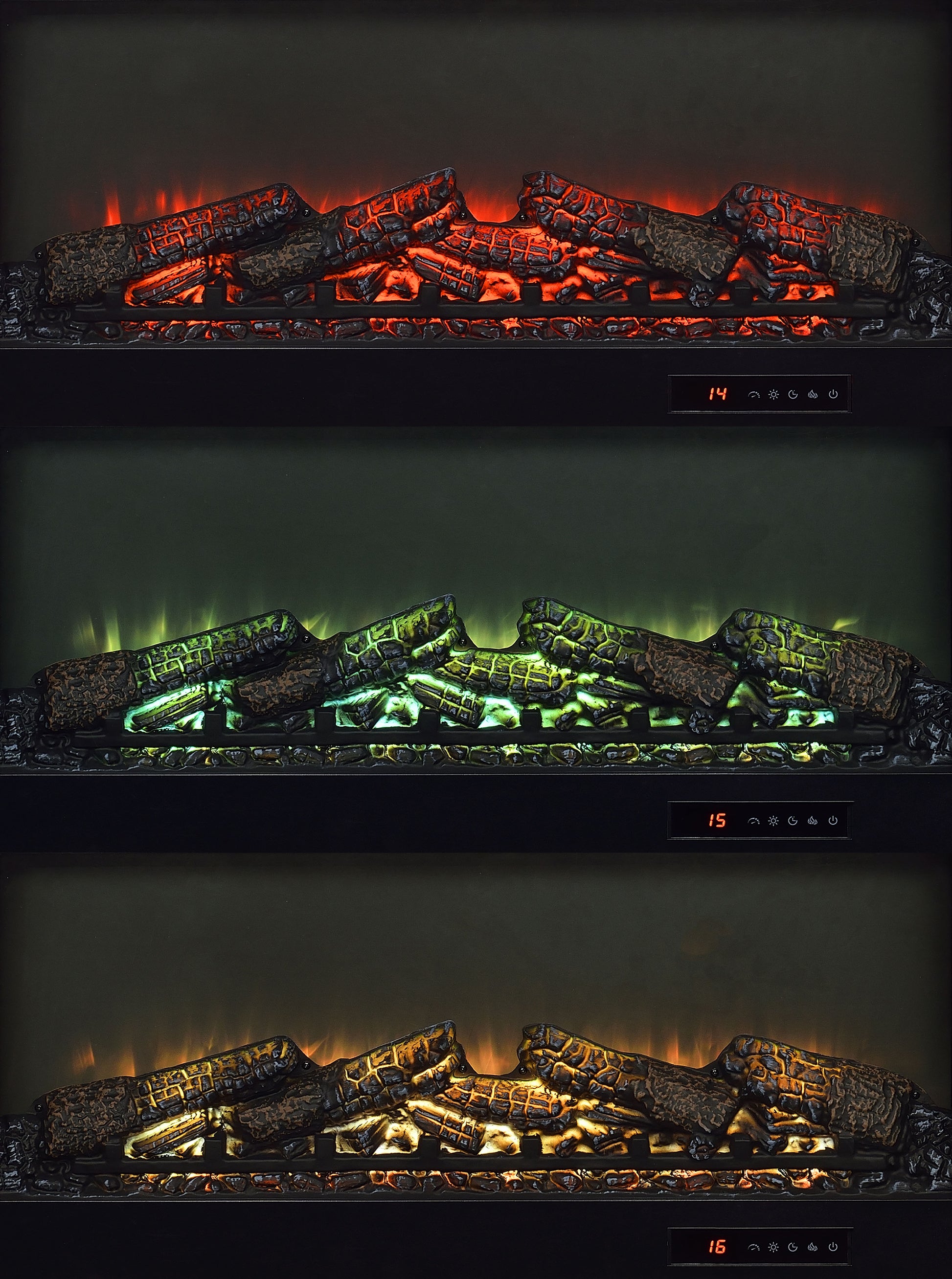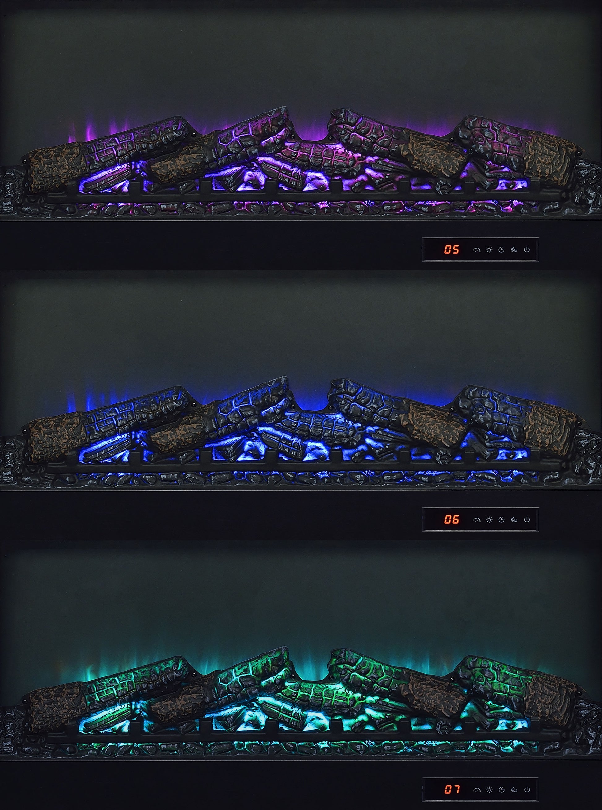 • TV stand fireplace console with electric flame visualizer and center cubby for media components