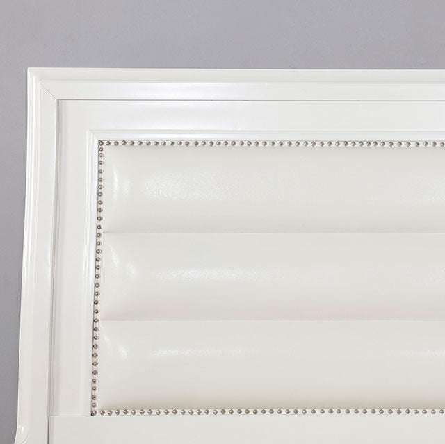 Lavish design crafted with a tall, padded headboard with intricate tufting. Nailheads trim the edges of the leatherette headboard, while case goods feature drawers with mirror front panels. Available in either black or silver finish, this set is perfect to vitalize any contemporary style bedroom d