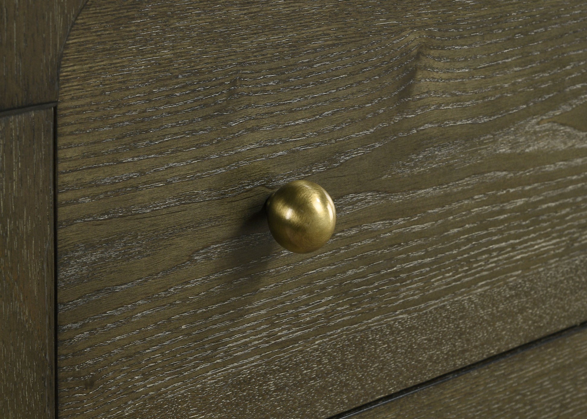• Dark cocoa finish with brass knobs for a sophisticated look