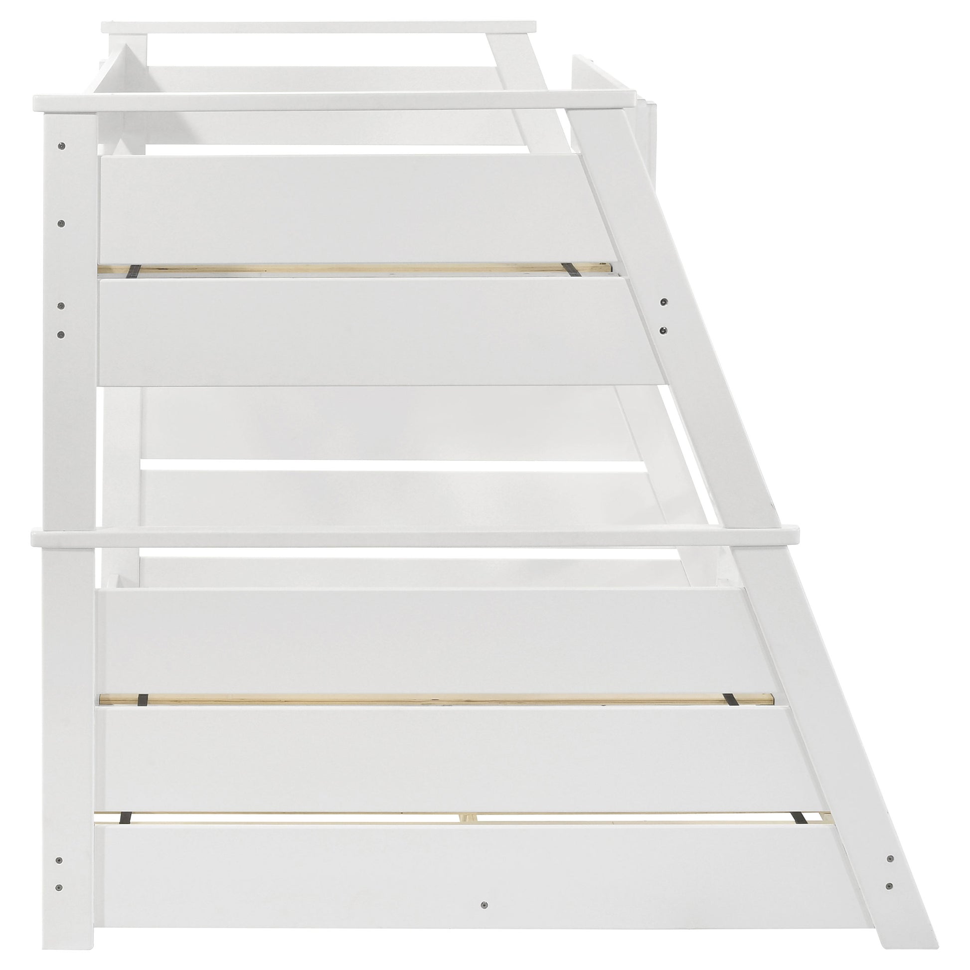 • Twin-over-full bunk bed with a crisp white finish for a clean, versatile look