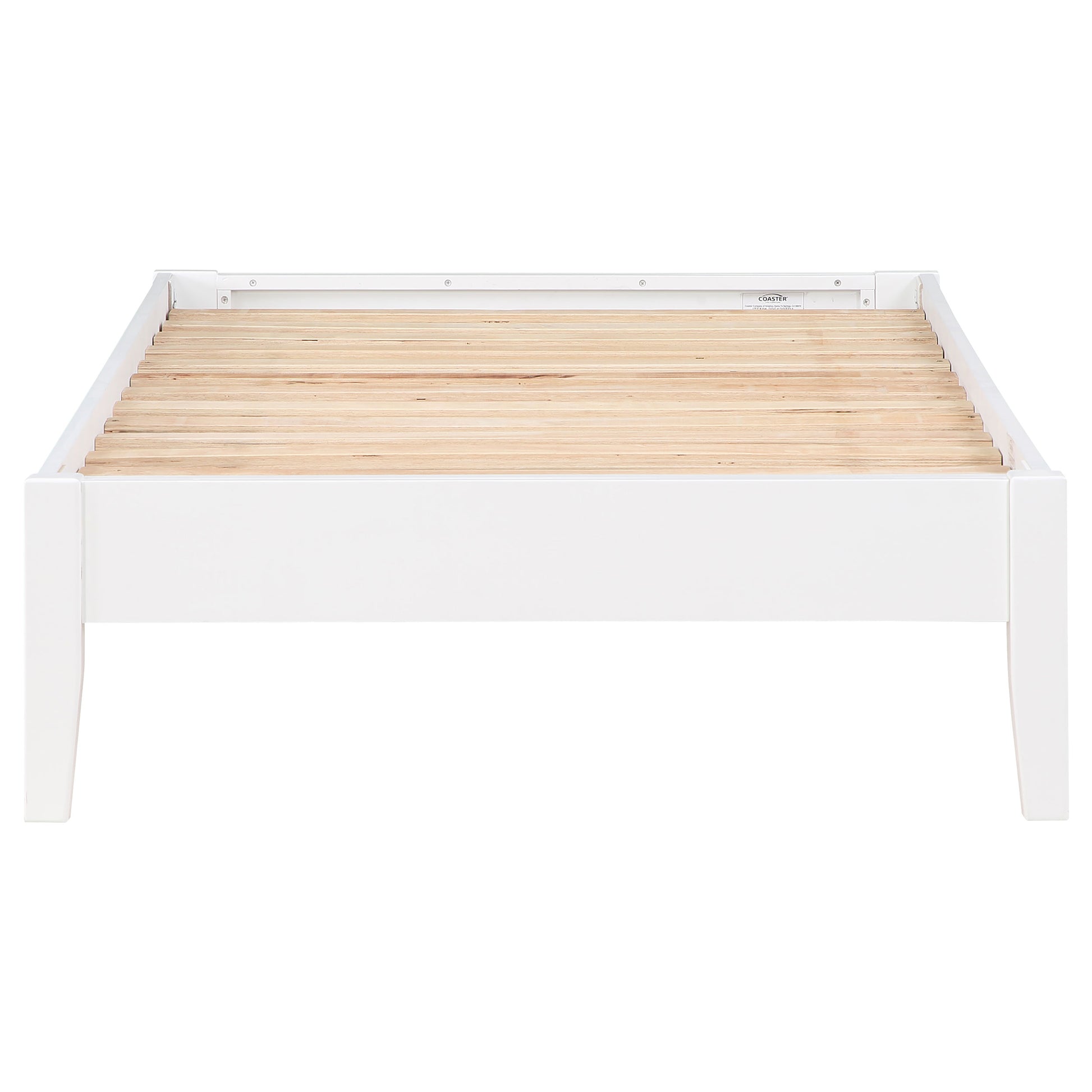 Designed for versatility, this universal platform bed offers a sturdy foundation with a fully slatted, mattress-ready design. Crafted from durable rubberwood and pine, it ensures lasting support and stability. Pre-drilled holes on the back legs allow for effortless headboard attachment, providing customization options to suit various bedroom styles. With its clean lines and solid construction, this bed serves as a functional and stylish base for any sleep space.