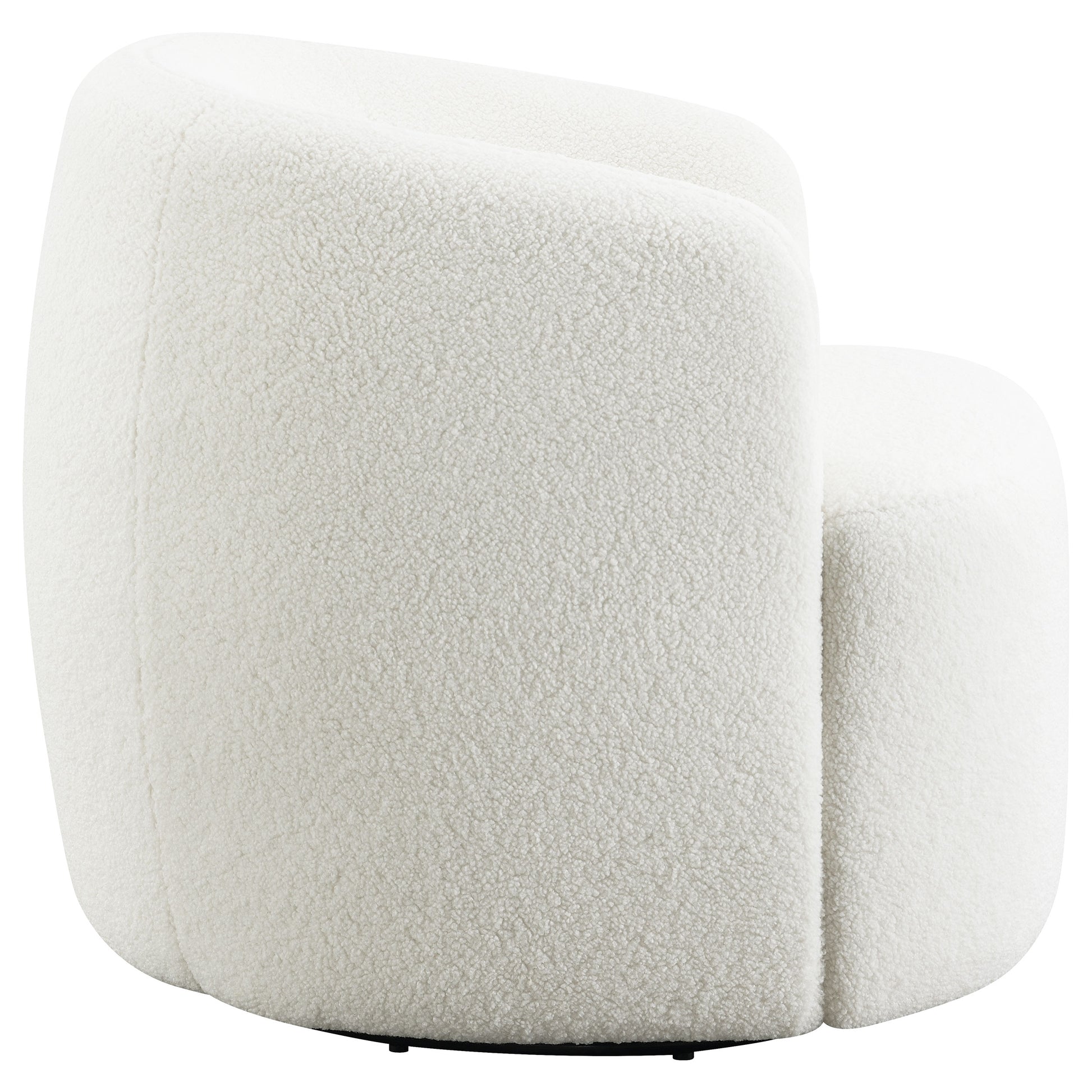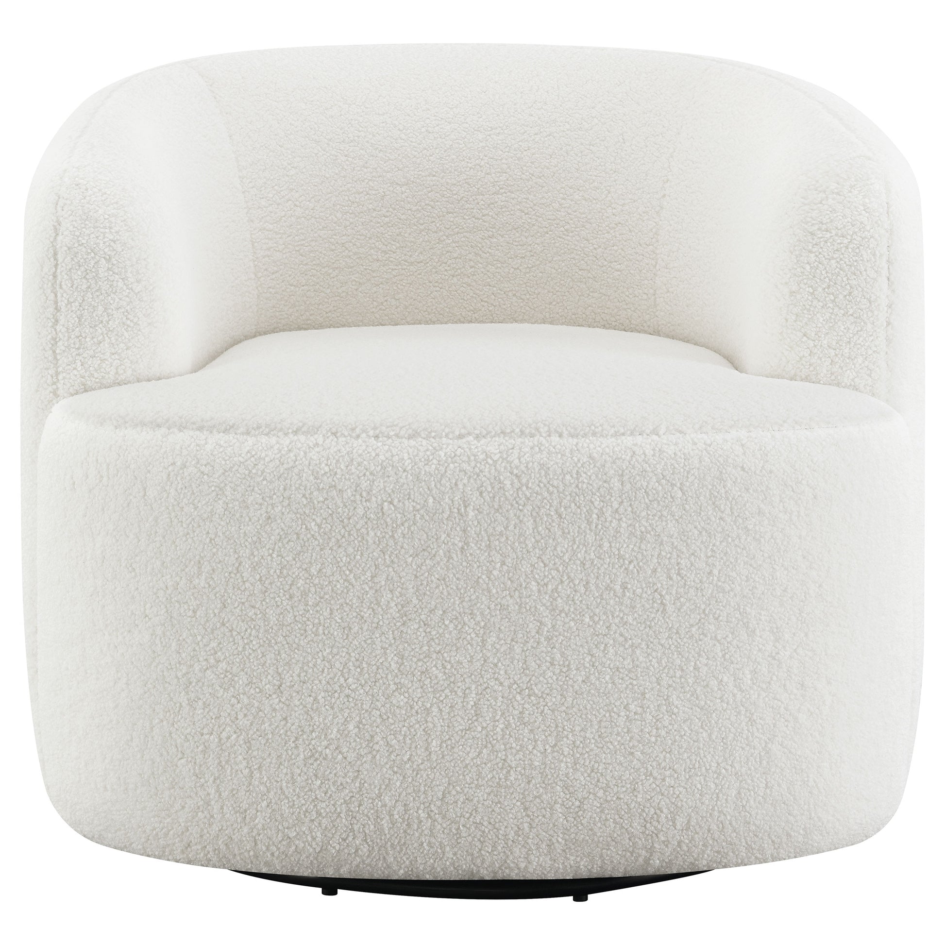 Curl up in comfort and style with this plush swivel accent chair, wrapped in soft faux sheepskin upholstery. Its rounded barrel-inspired silhouette and low backrest embrace you in cozy support, while the hidden swivel base allows a smooth 360-degree rotation for effortless movement. The tailored tight seat and sleek, minimalist profile add modern refinement, making it a versatile piece that complements any living room, bedroom, or reading nook with inviting warmth and timeless appeal.