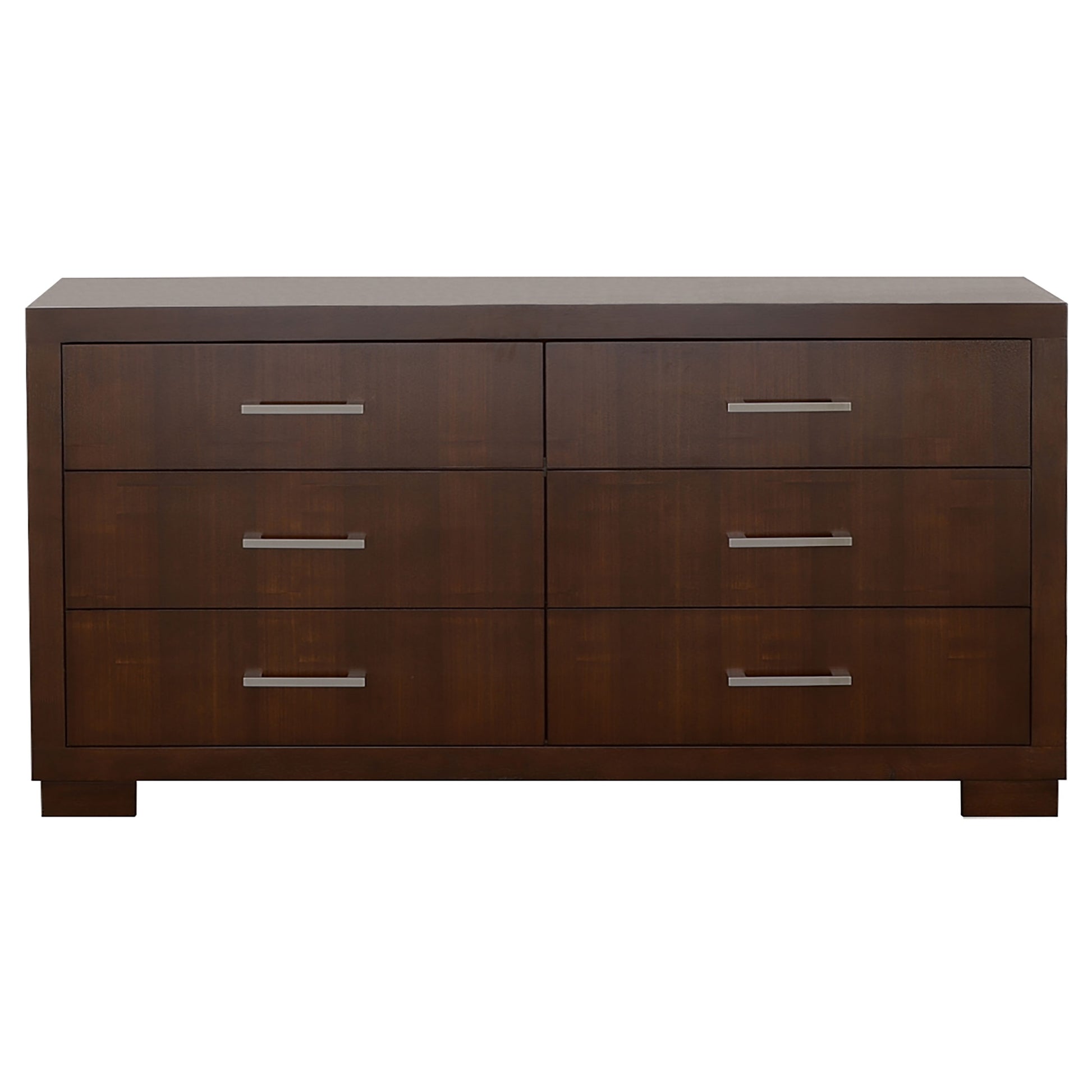 Modern elegance meets everyday comfort in this bedroom set. A sleek platform bed features integrated LED lighting beneath the side rails and foot, offering a soft ambient glow that enhances its floating silhouette. Coordinating case pieces with felt-lined top drawers and silver-tone bar pulls add refined functionality. Crafted from rubberwood and engineered wood, each element embodies quiet sophistication, bringing timeless harmony to contemporary spaces.