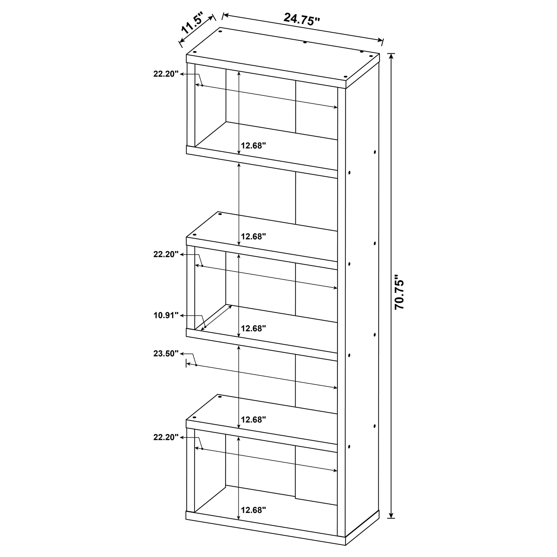 • Asymmetrical five-tier bookshelf in weathered grey laminate veneer