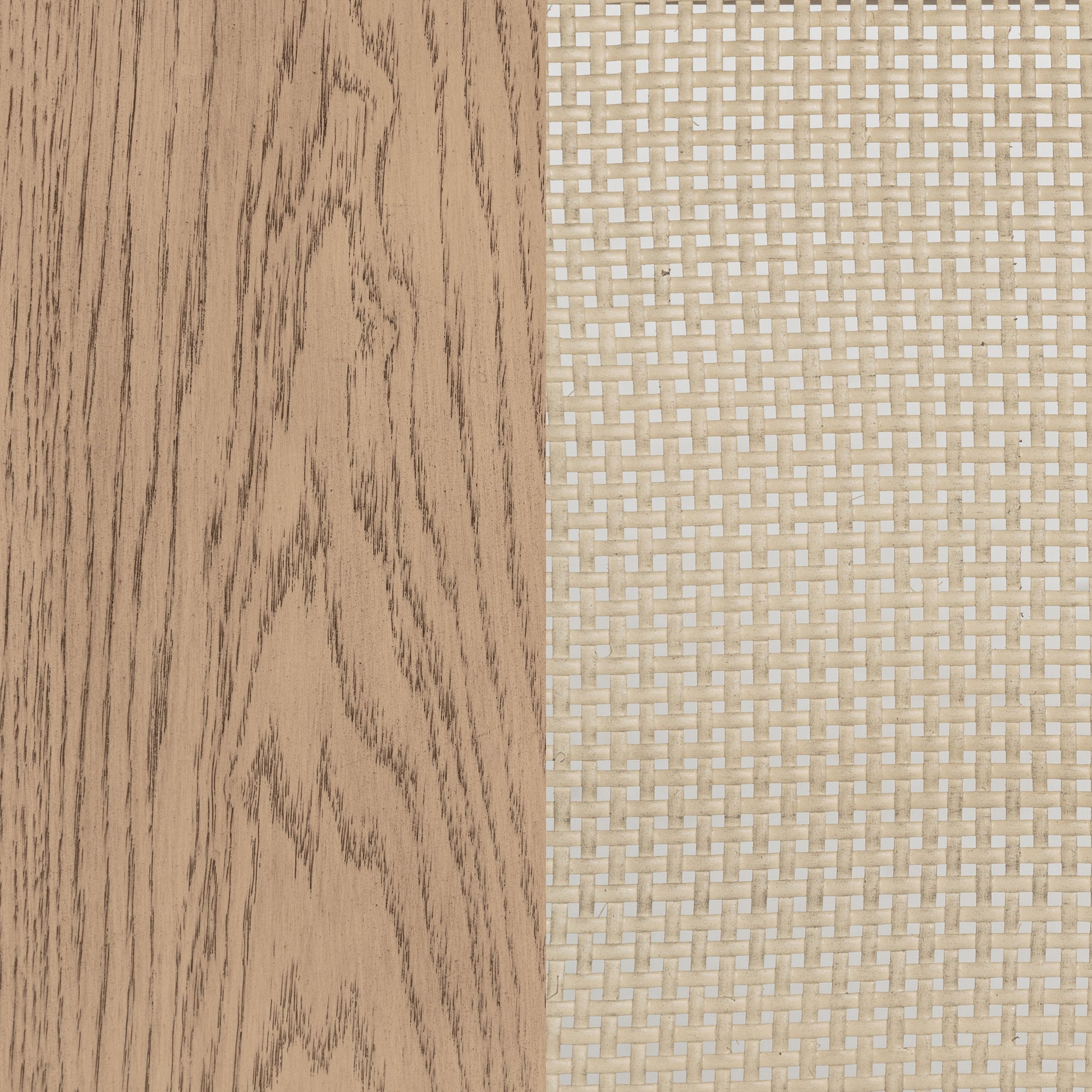 • Hand-woven cane door and drawer fronts add artisanal charm and texture