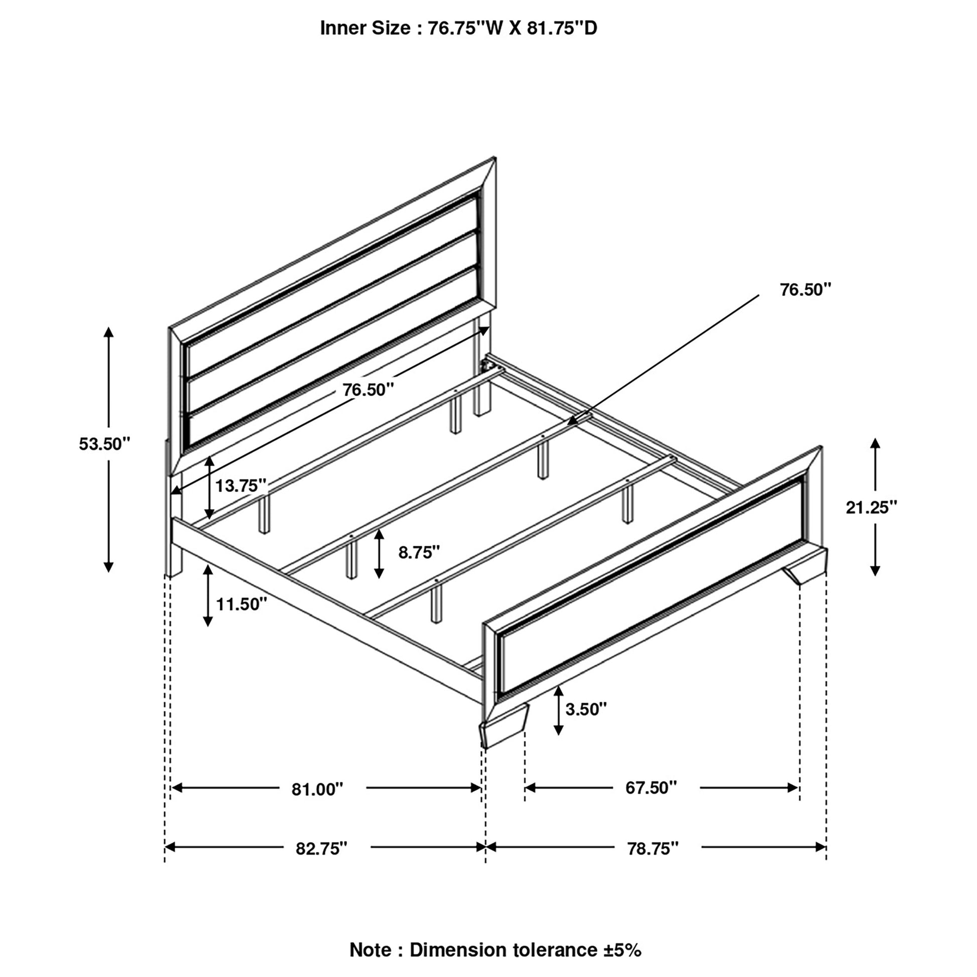 • Panel bed with horizontal recessed detailing and bold rectangular framing