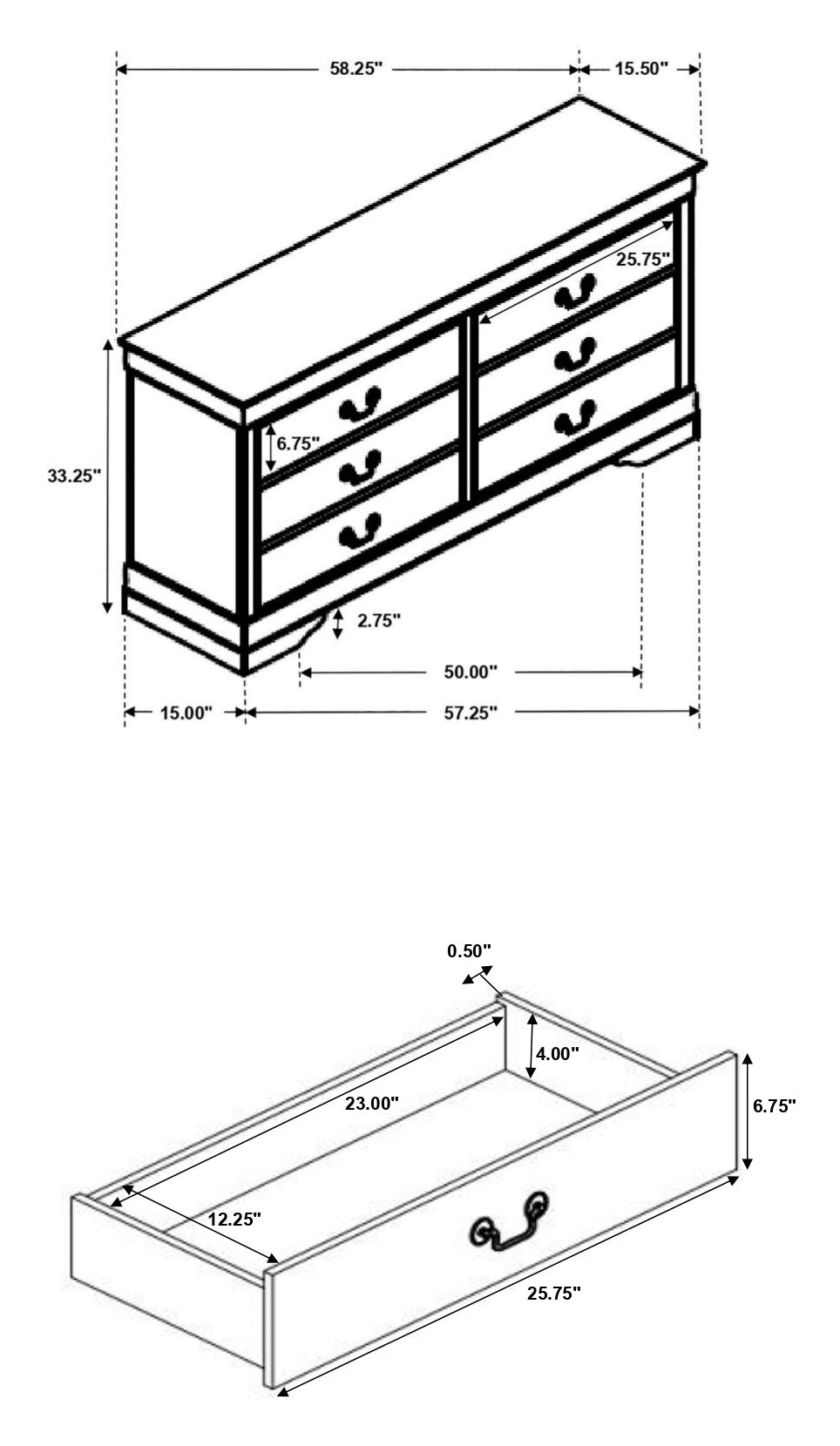 The Louis Philippe collection is highlighted by this 4-piece bedroom set that is perfect for the guest bedroom or youth bedroom. The Full bed (also available in Eastern King, Queen, and Twin) is characterized by a high headboard and low footboard, both with slightly flared styling. The nightstand and dresser have deep drawers with dovetail construction and silver bail handles for convenient pull-out and stylish appeal. Place the impressive rectangular mirror fits upon the dresser to complete the look. Built from select hardwoods and wood veneer, this traditional-style set comes with a cappuccino finish that adds a warm ambiance to the bedroom.