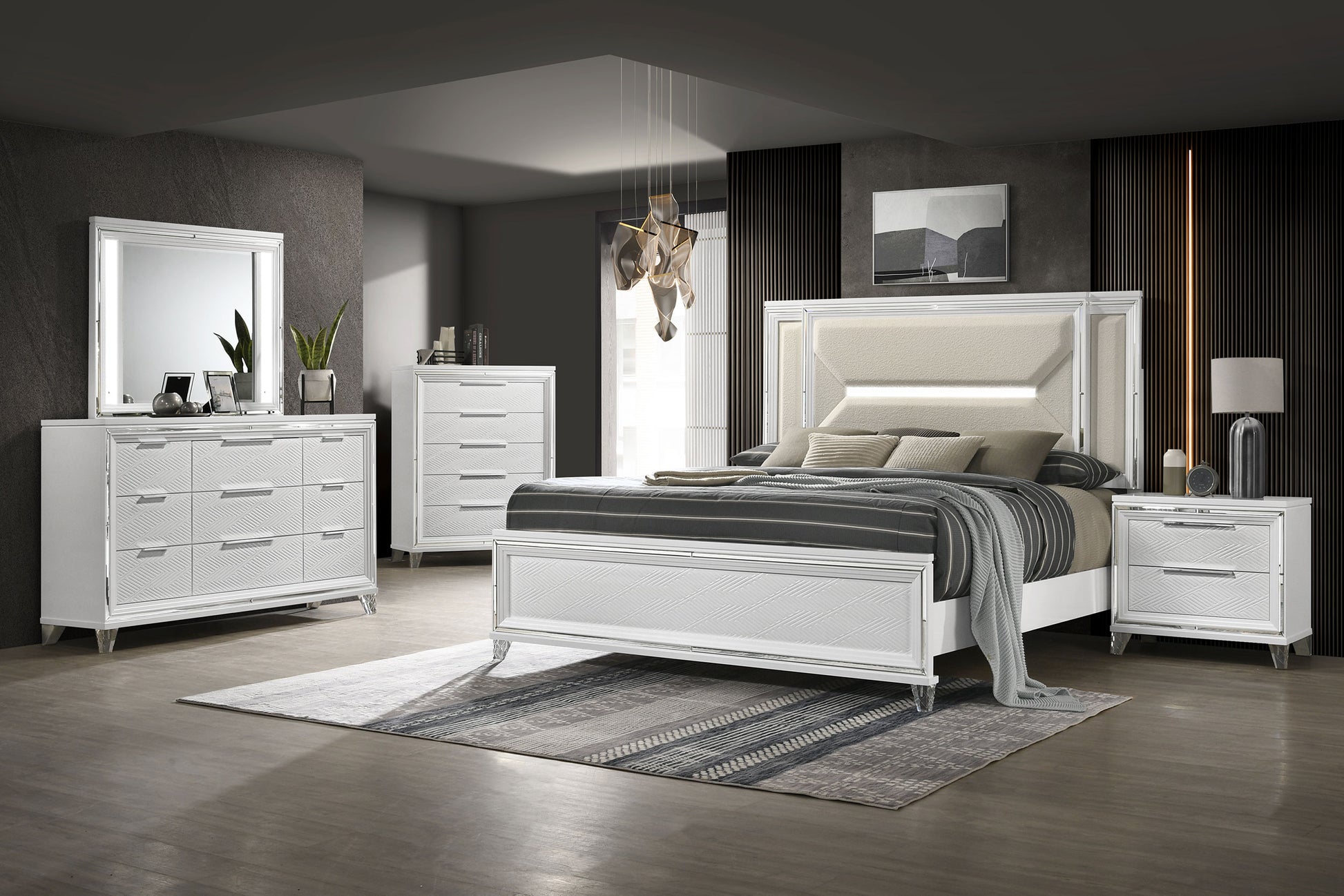Complete your dresser with this elegant mirror, designed to enhance the overall look of your bedroom. The white finish and mirror framing perfectly complement the modern Italian design of the dresser. Featuring a touch LED light, this mirror adds a touch of sophistication and functionality to your space. Crafted from rubberwood, MDF, and mirror, this dresser mirror is the perfect finishing touch for your luxurious bedroom.