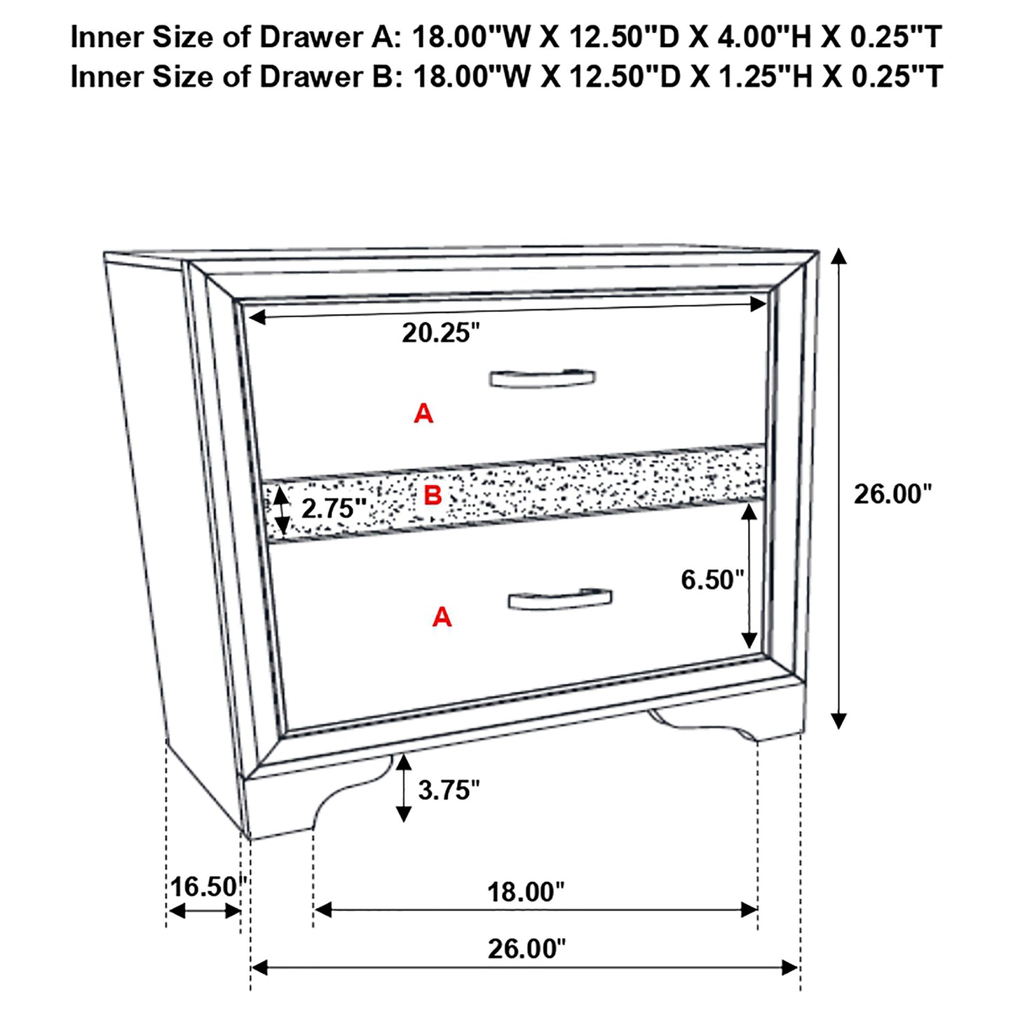 Create a stunning bedroom ensemble that's fit for modern royalty. Each gorgeous piece in this four-piece set flaunts silvery, sparkling accents for a truly glamorous look. The bed features a solid, straight silhouette and two storage drawers built into the base. The case pieces bring you even more storage space to keep your room looking neat and tidy. Available in a variety of colors and sizes, there's an option to bring any bedroom to life.