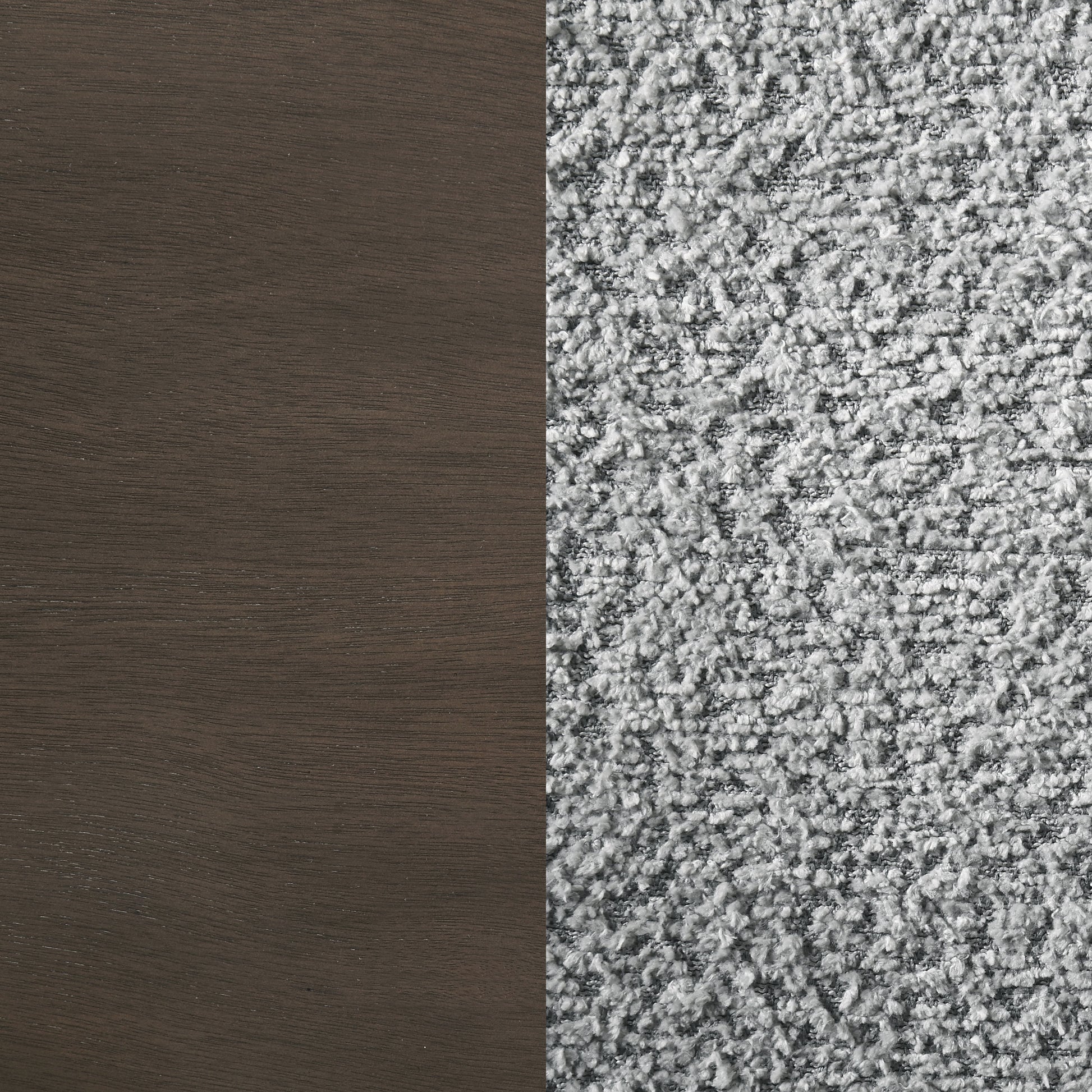 Elevate your dining space with this beautifully crafted dining chair, blending intricate detailing with luxurious comfort. The chair features a molded geometric design on the backrest, offering a striking visual appeal. Constructed from solid wood and embossed, this chair is finished in a dark brown hue, adding warmth to any dining room. The seat and front of the backrest are upholstered in a soft, textured grey fabric, providing both style and comfort. Whether used as a dining chair or an accent piece, this chair is sure to make a statement.