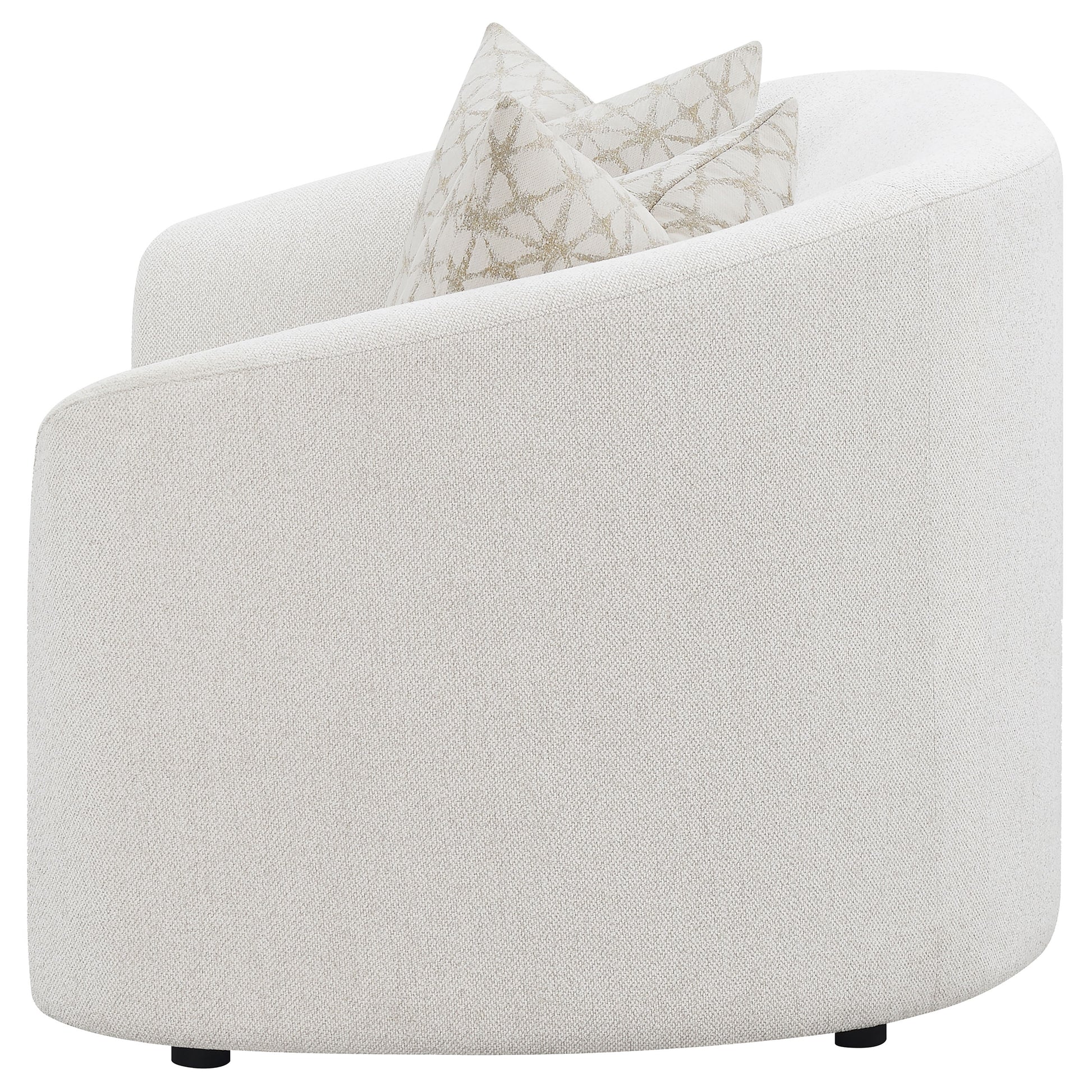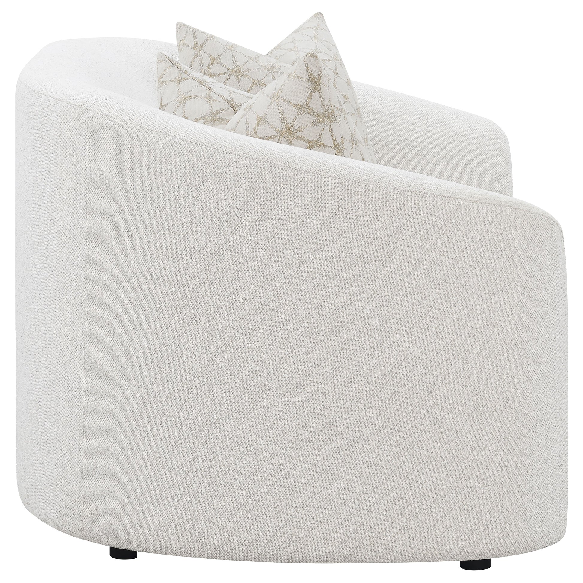 • Sloped armrests and rounded edges highlight graceful contours