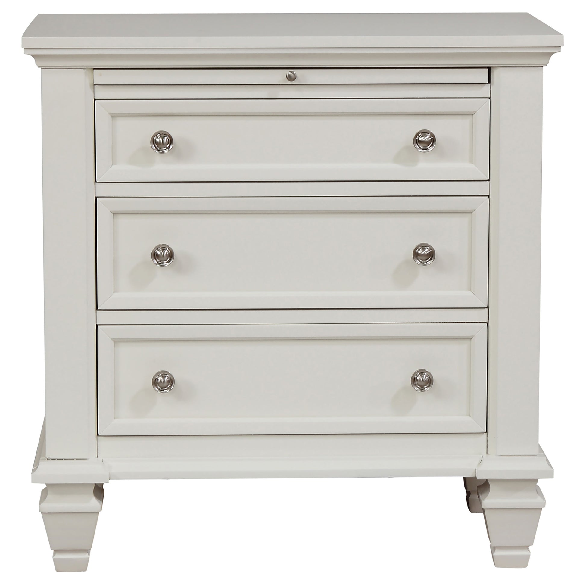 • Soft cream white finish with brushed nickel hardware for a refined, versatile look