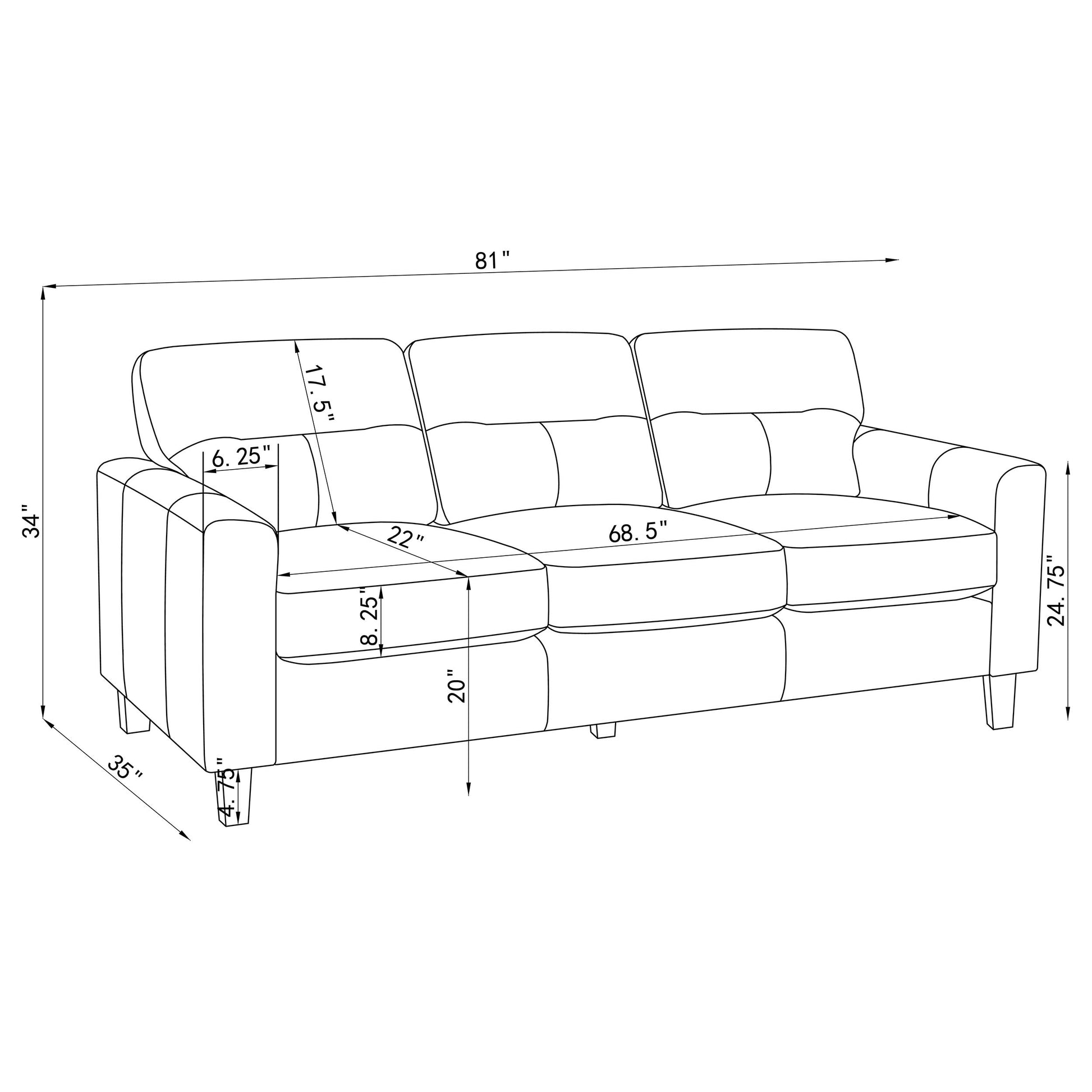 • Sofa with wide track arms and deep seat for modern lounge comfort