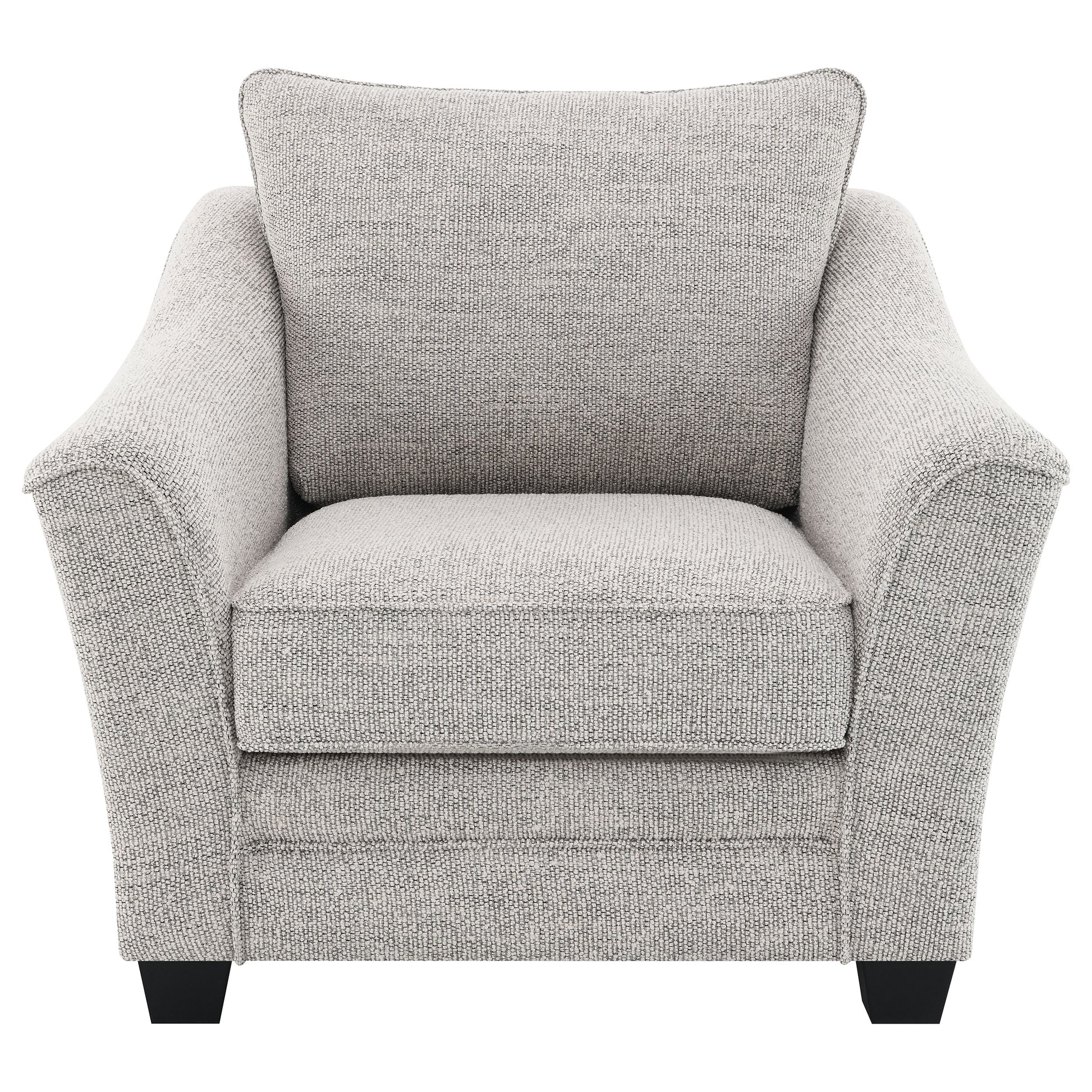 • Wide, sloping arms feature piped trim that adds a tailored touch for a refined look and feel