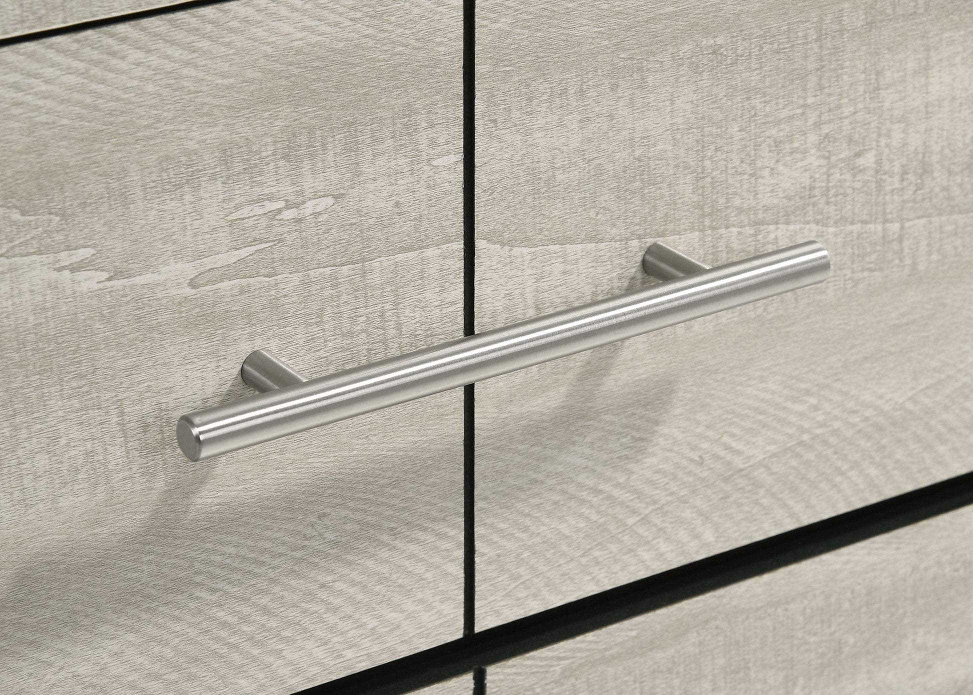 • Rustic cream finish with rough-sawn, white-washed engineered paper veneer