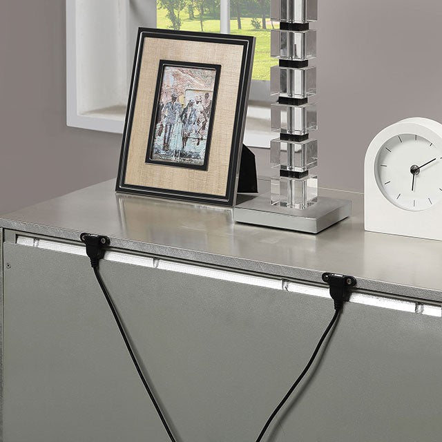 Gracing the panels of this night stand is an intricate play of radial and circular lines, engraved in polyresin material. Your eyes are drawn towards this beautiful pattern reminiscent of the art deco era. Mirror panels line each front edge, adding to the luxurious appeal. On top of that, the classy champagne finish exudes subtle warmth that makes this night stand, even in its grandeur, still plenty welcoming.