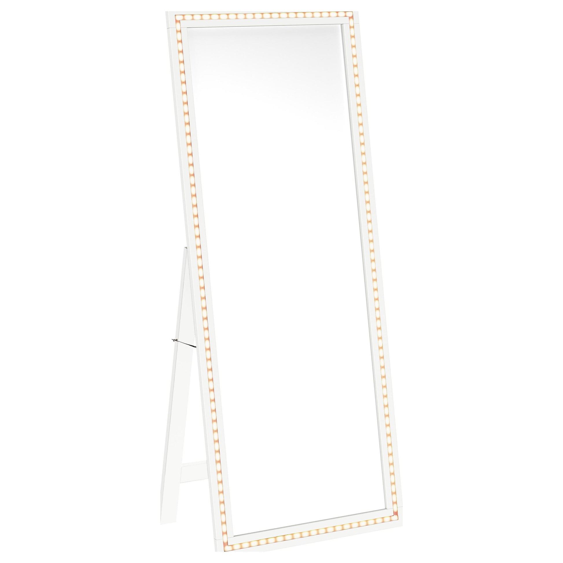 • A-frame stand allows the mirror to float within your space without requiring a wall to lean against