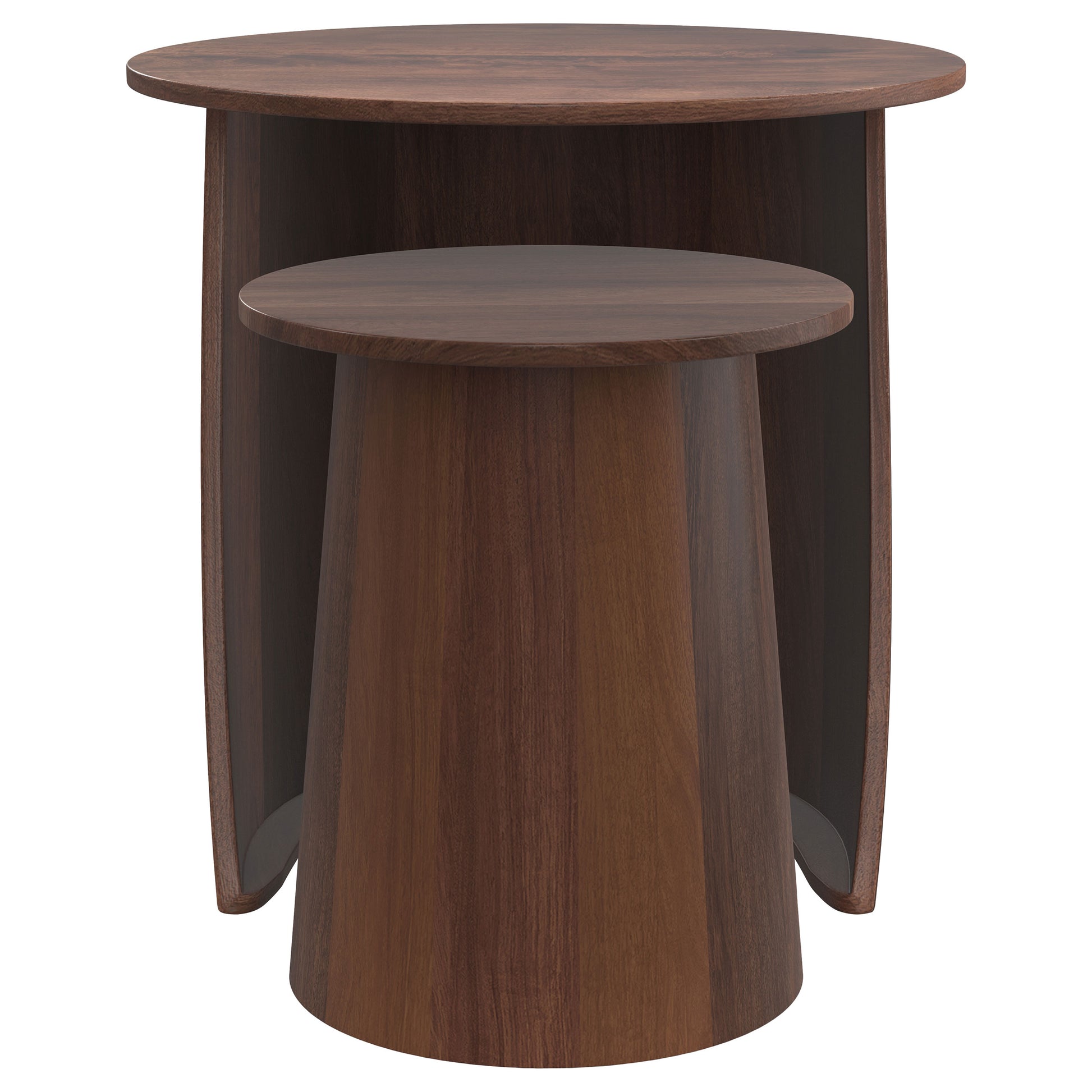 Yency 2-piece Round Mango Wood Nesting Table Set Dark Brown Mango
