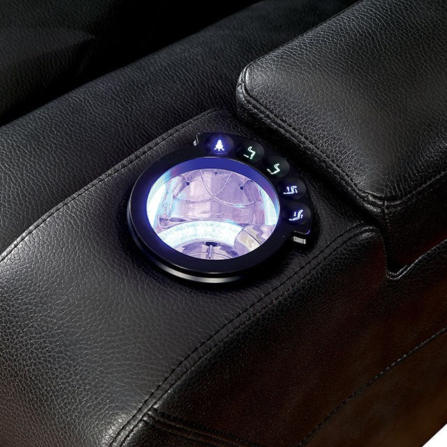 This reclining love seat offers power reclining functionality in the headrests and legrests, not to mention built-in lights for the cup holders. Embark on journeys within your own home with this futuristic reclining sofa!